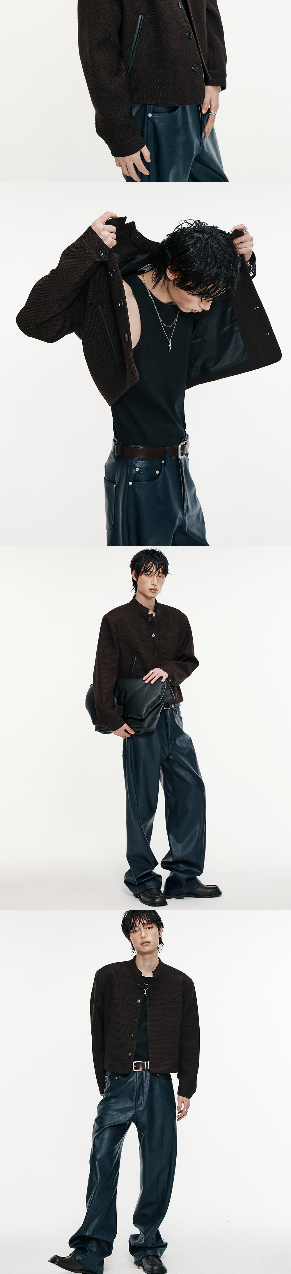 Haleine Mandarin Collar Wool Crop Jacket Brown (WJ128)