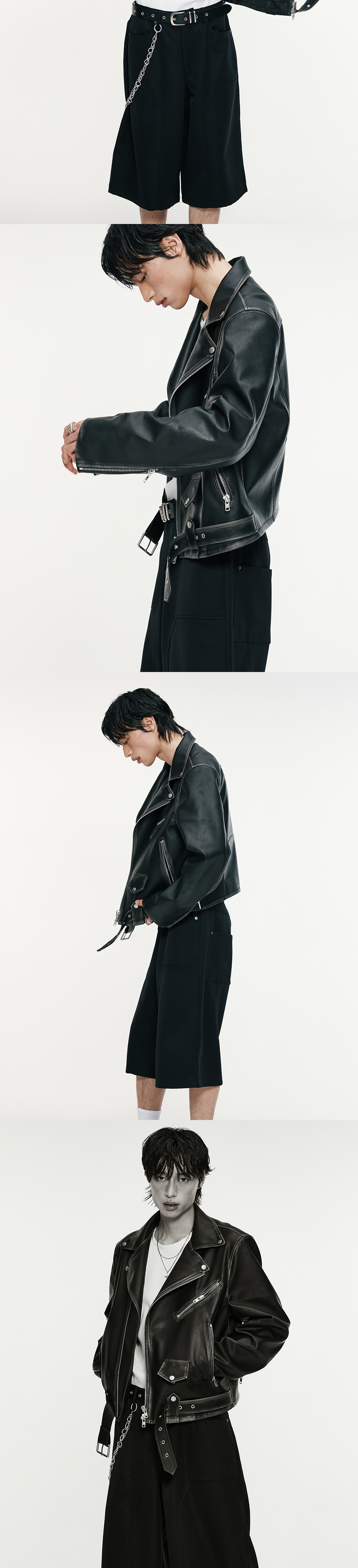 도톰하고 부드러운 텍스쳐감의 빈티지 타입 비건 레더로 제작된 라이더 자켓입니다. 절개 및 스티치 부위에 후가공으로 빈티지 효과를 입힘으로써 현대적인 디자인과 빈티지함이 믹스된 세련된 분위기를 연출하였습니다. -model- 184cm / 가슴둘레 83cm / 허리둘레 70cm / 엉덩이둘레 90cm - 2사이즈 착용