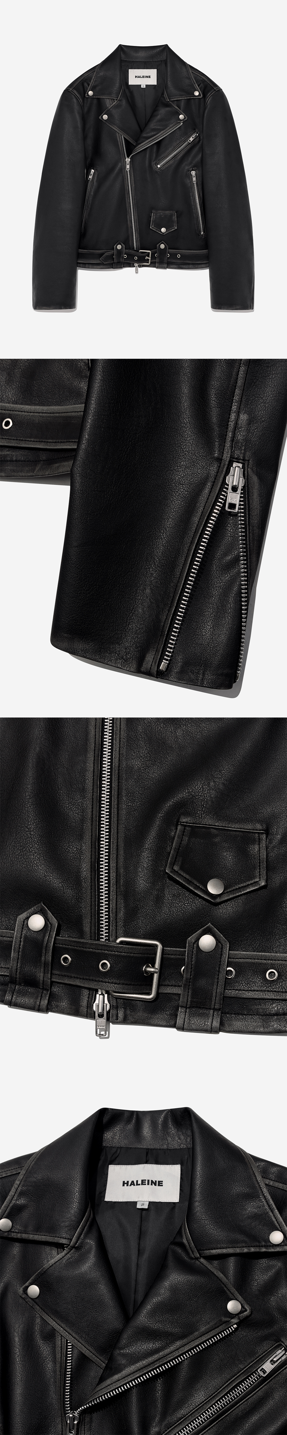 알렌느 디스트레스드 라이더 포우 레더 자켓 블랙
