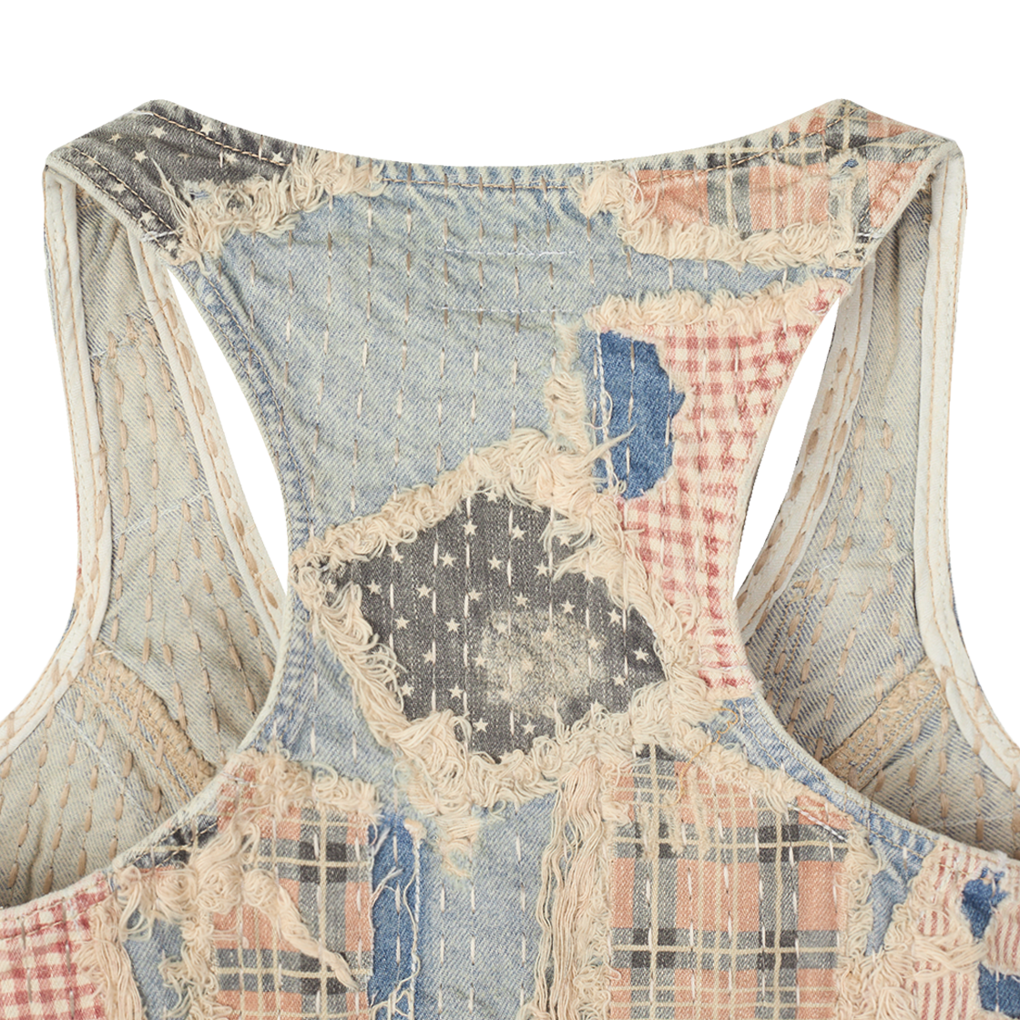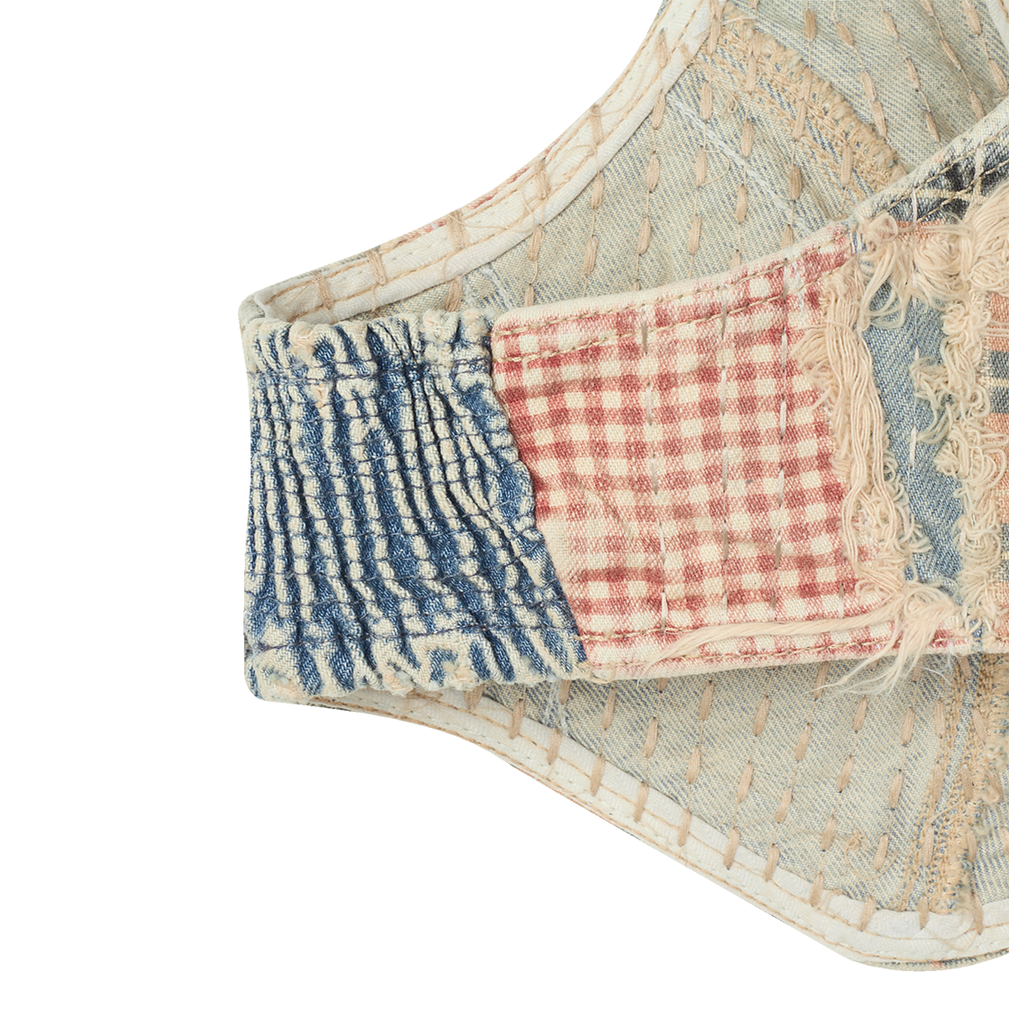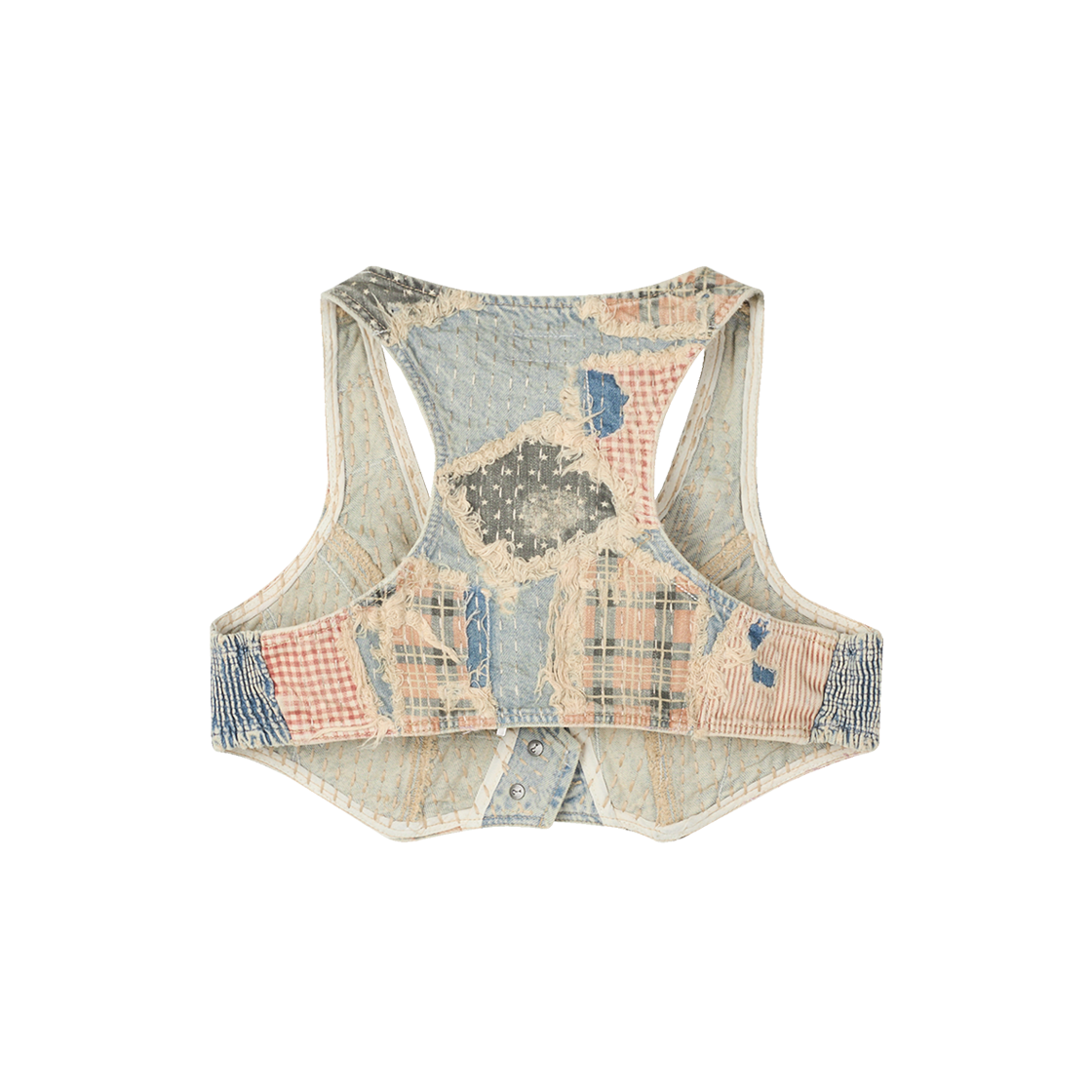 80년대 미국 서부의 자유로운 무드가 느껴지는 Guess USA의 Women Vintage Denim Top Light Wash입니다. -유니크한 패치워크 디자인 -레귤러 핏 -distressed detail -전면 버튼 2개