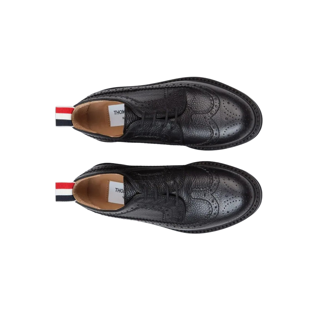 (Kids) Thom Browne Pebbled Calfskin Classic Longwing Brogue Black