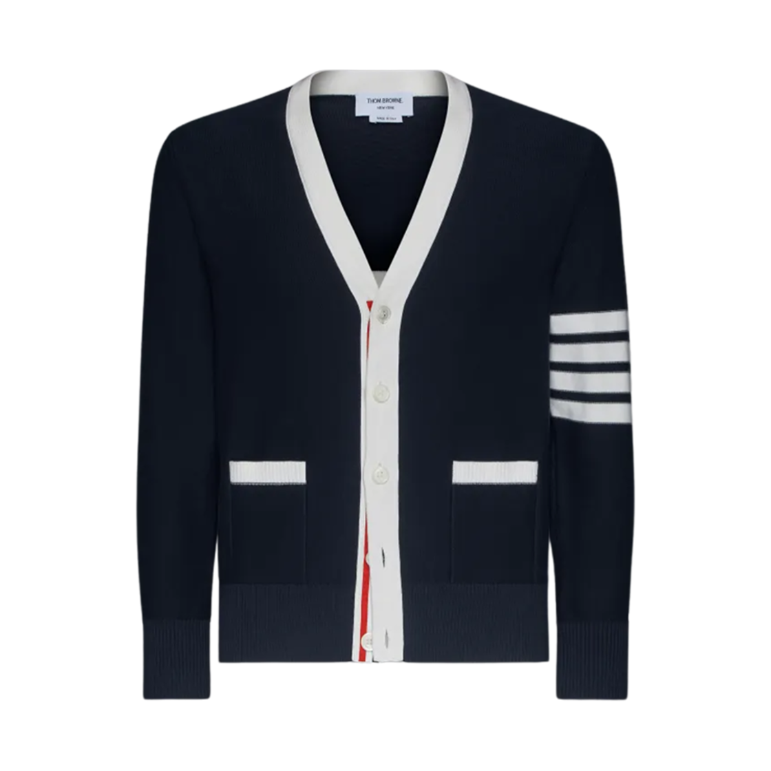 Thom Browne Cotton 4-Bar Relaxed Fit Hector V-Neck Cardigan Blue