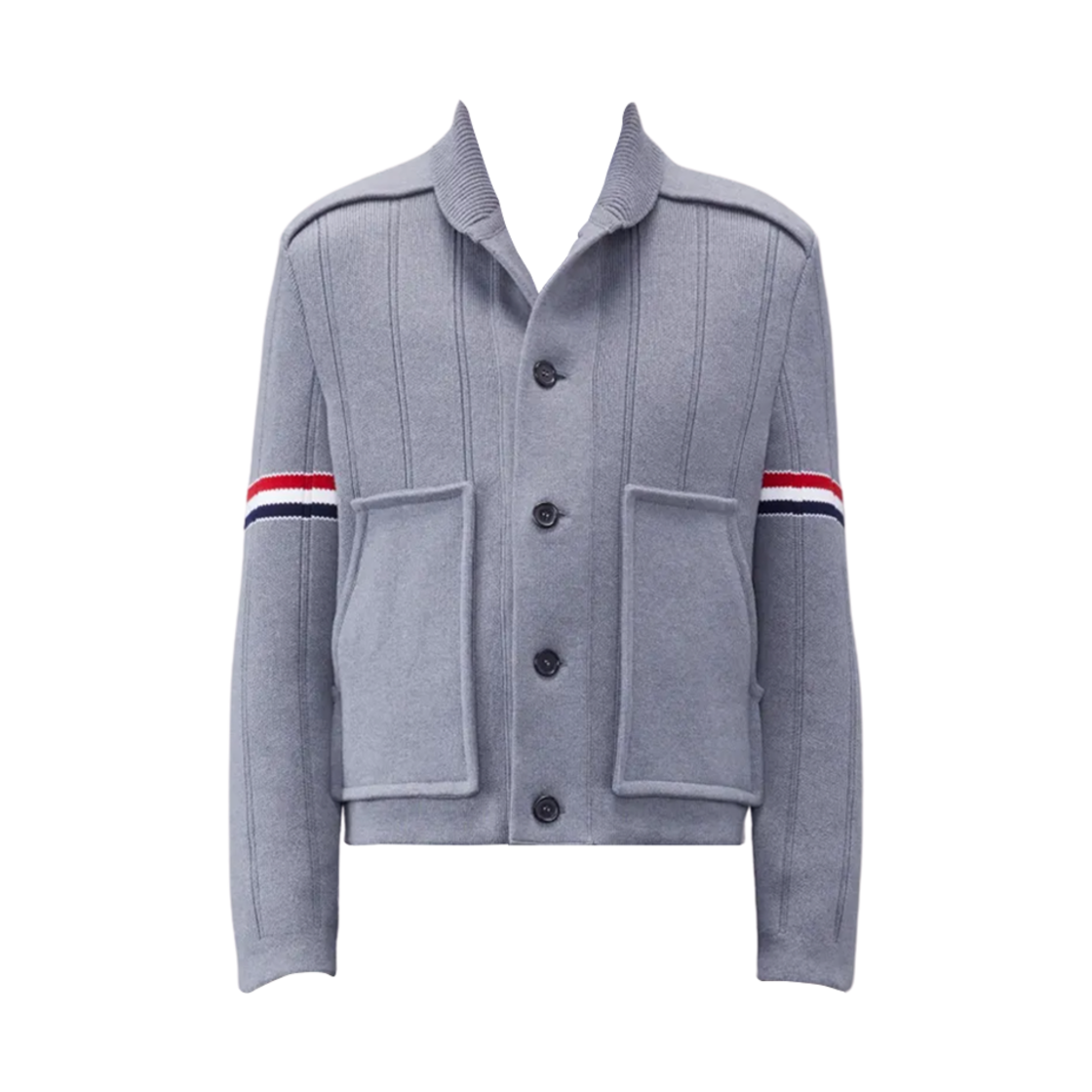 Thom Browne Double Face Cotton Cashmere Shawl Collar Jacket Light Grey