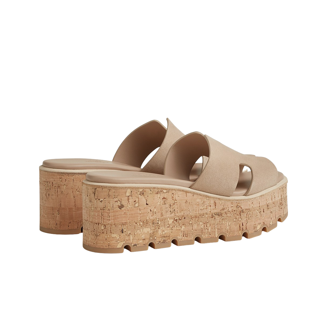 (W) Hermes Eze 30 Sandal Suede Goatskin & Beige Camel