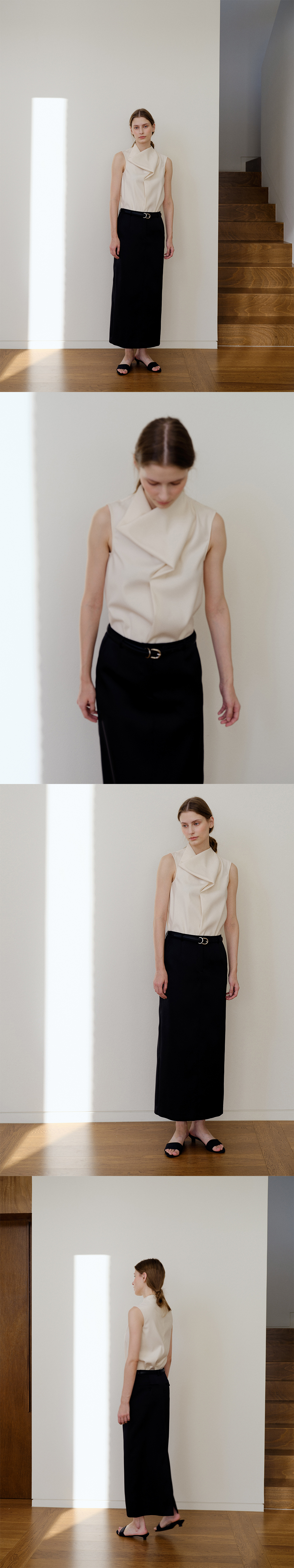 사틴 펜슬 맥시 스커트. 은은한 사틴 텍스처, 옆면 슬래시 포켓과 슬림한 파이핑 디테일, 맥시 기장감의 클래식 테일러드 스커트. POLYESTER 100 LINING: POLYESTER 100 기계세탁 불가 / 드라이클리닝 권장 / 중온 다림질 (약 180-200℃) 변형을 막기 위해서 드라이클리닝을 권장합니다. 손세탁은 차가운 온도로 단기간에 마무리합니다. ** 사이즈 1 (S), 2(M) 총장: 90 cm / 91 cm 허리 단면: 36 cm / 38 cm 힙 단면: 46 cm / 48 cm 밑단 단면: 50 cm / 52 cm