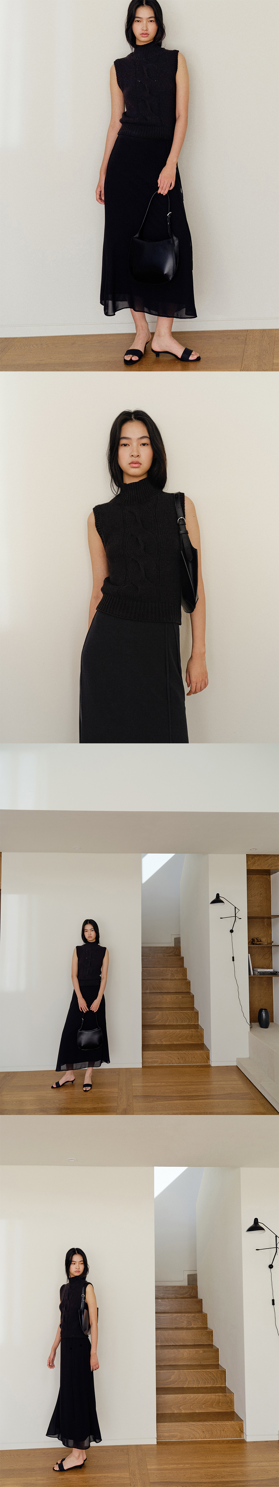 폴라 네크 코튼 혼방 슬리브리스 니트 탑. 볼드한 트위스트 조직, 슬림핏, 코튼 혼방의 쾌적한 터치, 네크 /밑단 립 조직으로 편안한 착용감. COTTON 58 ACRYLIC 42 기계세탁 불가 / 드라이클리닝 권장 / 중온 다림질 (약 180-200℃) 변형을 막기 위해서 드라이클리닝을 권장합니다. 손세탁은 차가운 온도로 단기간에 마무리합니다. ** 사이즈 총장: 58.5 cm 어깨 단면: 37 cm 암홀 단면: 20 cm 바스트 단면: 33.5 cm 밑단 단면: 31.5 cm