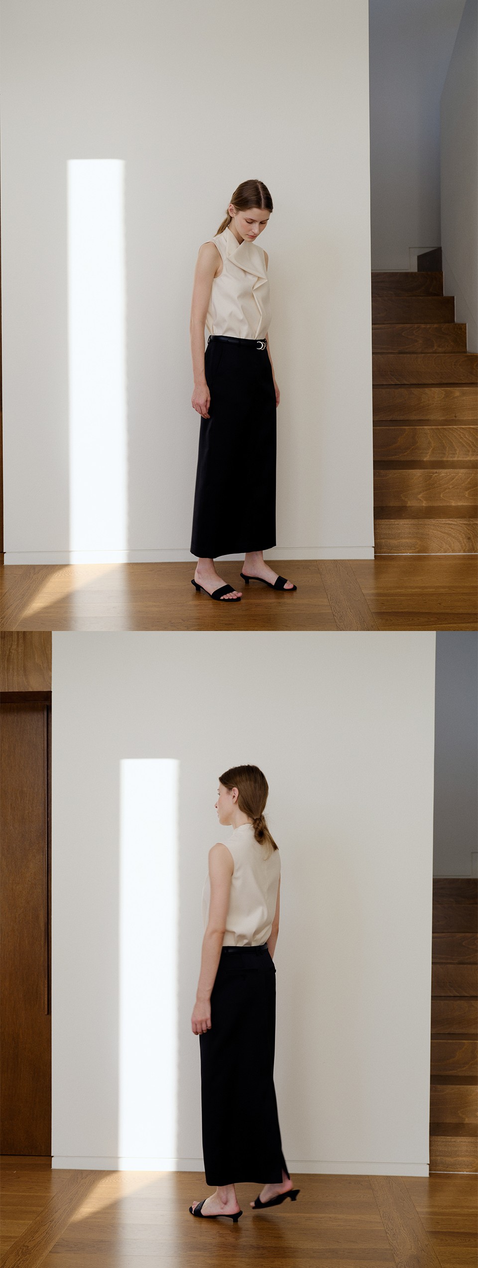 드레이퍼리 카울넥 블라우스. 풍성하게 쌓이는 드레이프 네크라인, 카울넥 아래로 위치한 턱 디테일, 은은한 조직감, 탈부착 가능한 웨이스트 스트랩으로 다양한 연출. POLYESTER 60 RAYON 36 SPAN 4 기계세탁 불가 / 드라이클리닝 권장 / 중온 다림질 (약 180-200℃) 변형을 막기 위해서 드라이클리닝을 권장합니다. 손세탁은 차가운 온도로 단기간에 마무리합니다. ** 사이즈 총장: 61 cm 어깨 단면: 38 cm 암홀 단면: 18 cm 바스트 단면: 43 cm 허리 단면: 47 cm 밑단 단면: 56 cm