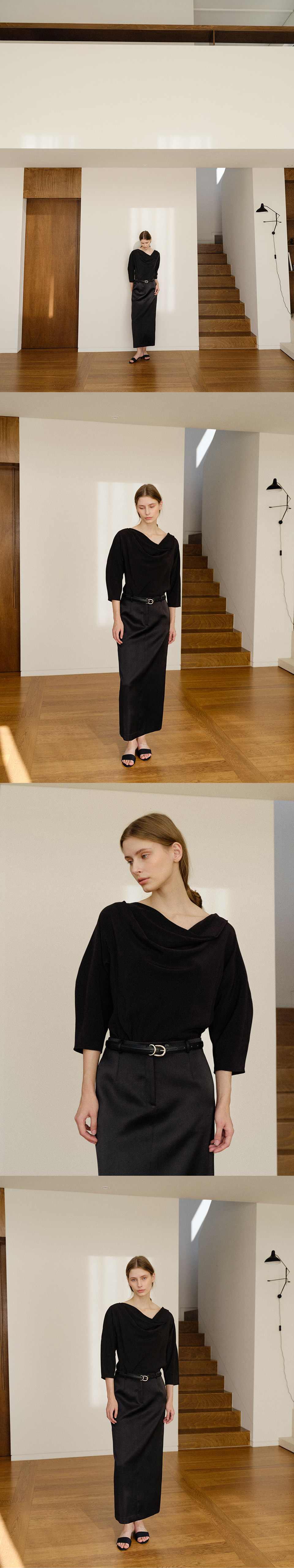 드레이퍼리 네크 디테일 블라우스. 우아하게 물결치듯 흐르는 네크라인, 7부 소매 기장감, 볼륨 소매 실루엣, 은은한 레이온 소재. RAYON 100 기계세탁 불가 / 드라이클리닝 권장 / 저온 다림질 (약 120-130℃) 변형을 막기 위해서 드라이클리닝을 권장합니다. 손세탁은 차가운 온도로 단기간에 마무리합니다. ** 사이즈 총장: 51.5 cm 어깨 단면: 35 cm 암홀 단면: 23 cm 바스트 단면: 46 cm 허리 단면: 45.5 cm 밑단 단면: 50 cm 소매 길이: 46.5 cm 소매 부리 단면: 12 cm