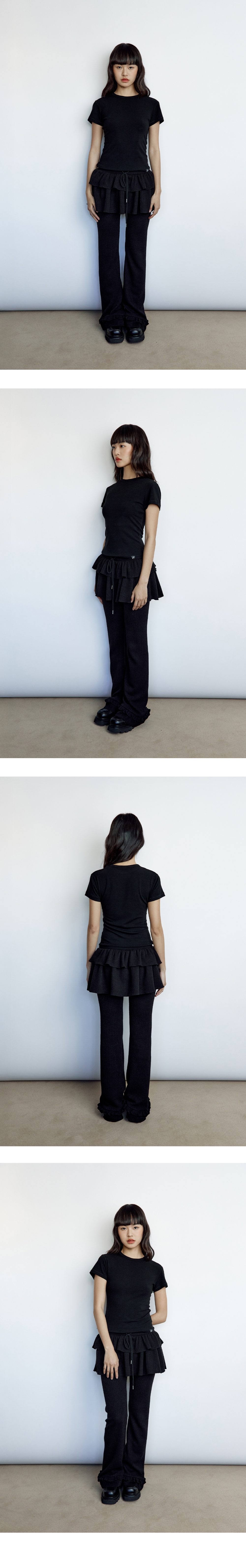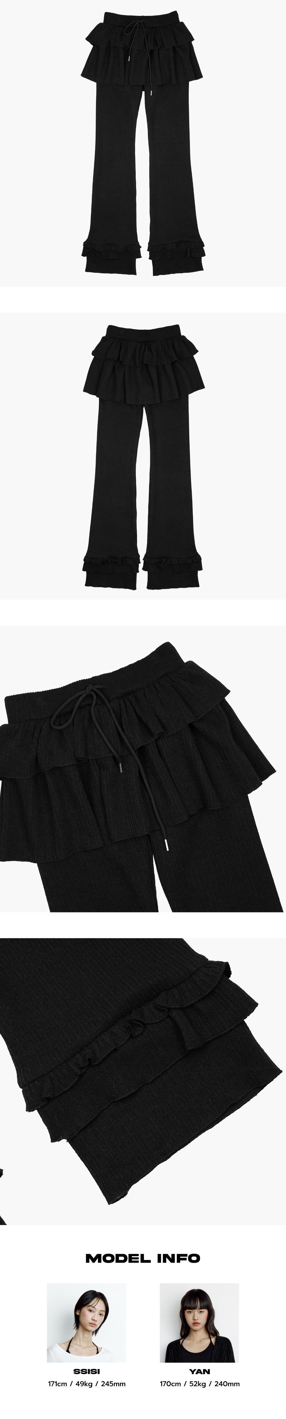 부드러운 니트 소재로 제작된 팬츠로 허리와 밑단의 프릴 디테일은 사랑스러운 느낌을 주며, 부츠컷 디자인으로 다리 라인이 길고 슬림하게 연출됩니다. 원단의 신축성과 허리 밴딩 제품으로 활동성과 편안한 착용감을 제공합니다. - Polyester 74%, Rayon 23%, Span 3 - Model Info : YAN (170cm / 52kg) / SSISI (171cm / 49kg) - Fitting size : S