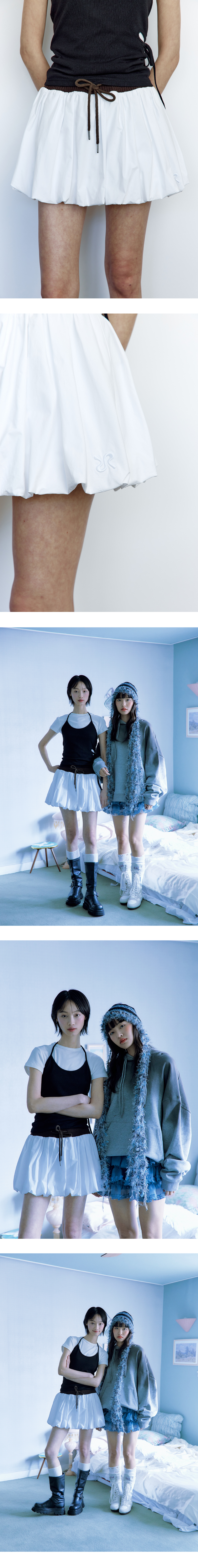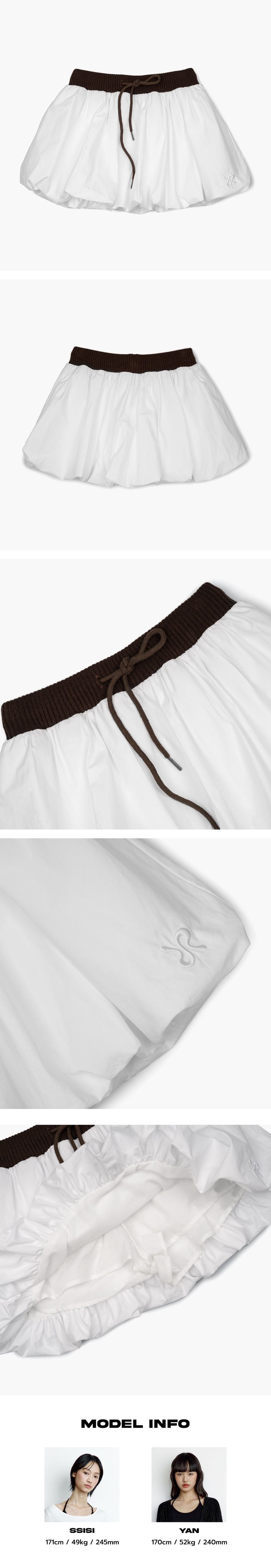 허리 밴딩으로 편안한 착용감을 더하고, 나일론 원단으로 풍성한 실루엣을 연출한 벌룬 스커트입니다. 자연스럽게 퍼지는 디자인이 스타일리시하면서도 사랑스러운 무드를 선사합니다. 또한, 속바지가 내장되어 있어 활동성이 뛰어나며, 더욱 편안하게 착용할 수 있습니다. - Polyester 100% - Model Info : SSISI (171cm / 49kg) / YAN (170cm / 52kg) - Fitting size : S