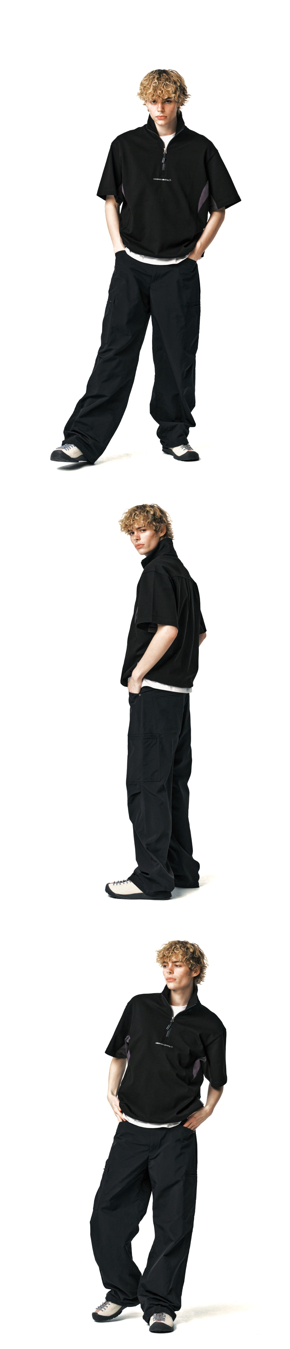 록히드마틴 숏 슬리브 하프 집업 티 블랙