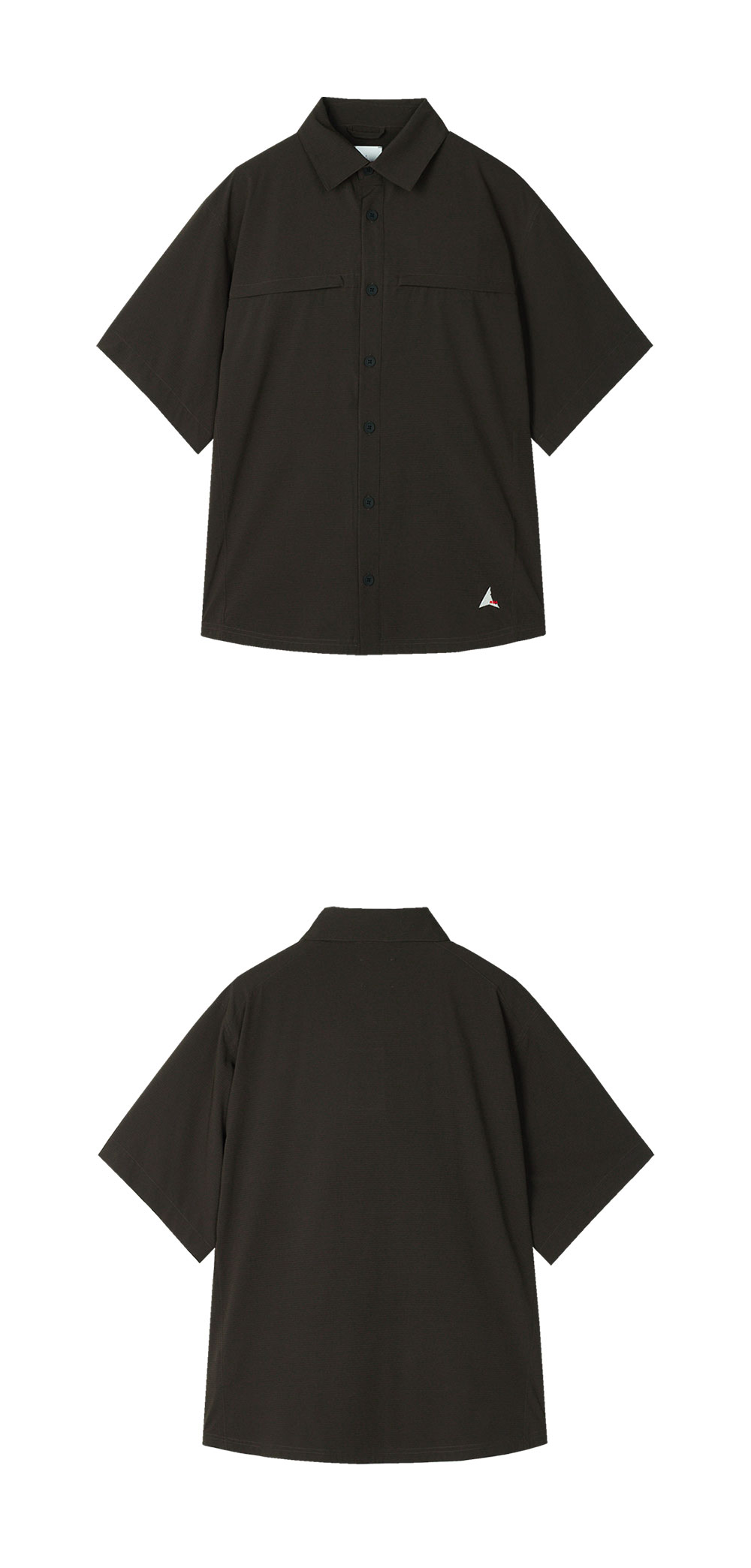가슴에 지퍼 포켓이 매력적인 로아의 도트 에어 셔츠 다크 브라운입니다. - 통기성을 향상시키는 Dot Air® 원단 기술 - 박시한 핏 - 가슴에 지퍼가 달린 주머니