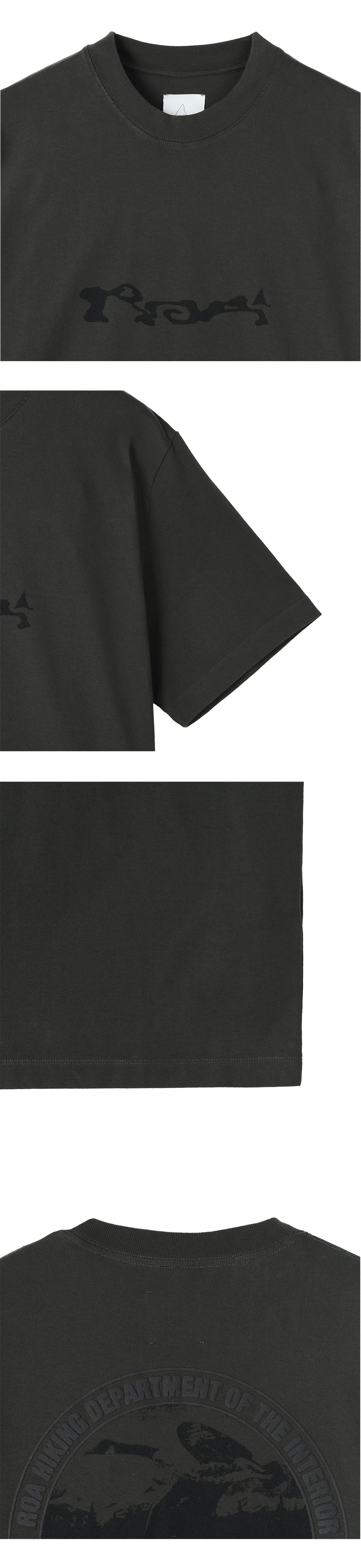 뒷면에 푹신한 스크린 프린팅이 매력적인 로아의 서비스 티셔츠 블랙 올리브입니다. - 무거운 유기농 면 저지 - 박시하고 편안한 핏 - 매우 부드럽고 통기성이 좋은 원단 - 전면 스크린프린트 그래픽 - 골지 칼라