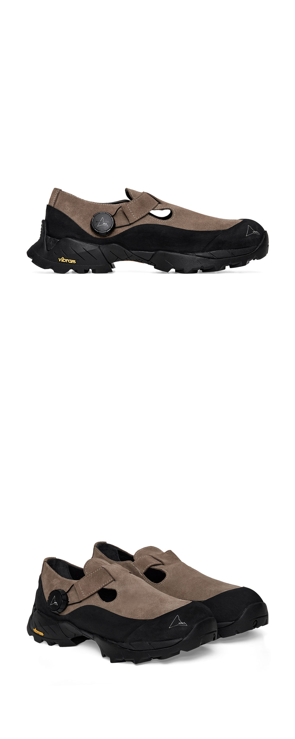 독특한 디자인과 소재가 매력적인 로아의 팔라 토프입니다. - 브라운 스웨이드 소재 - 미끄러움을 방지하는 Vibram® 메가그립 고무 밑창