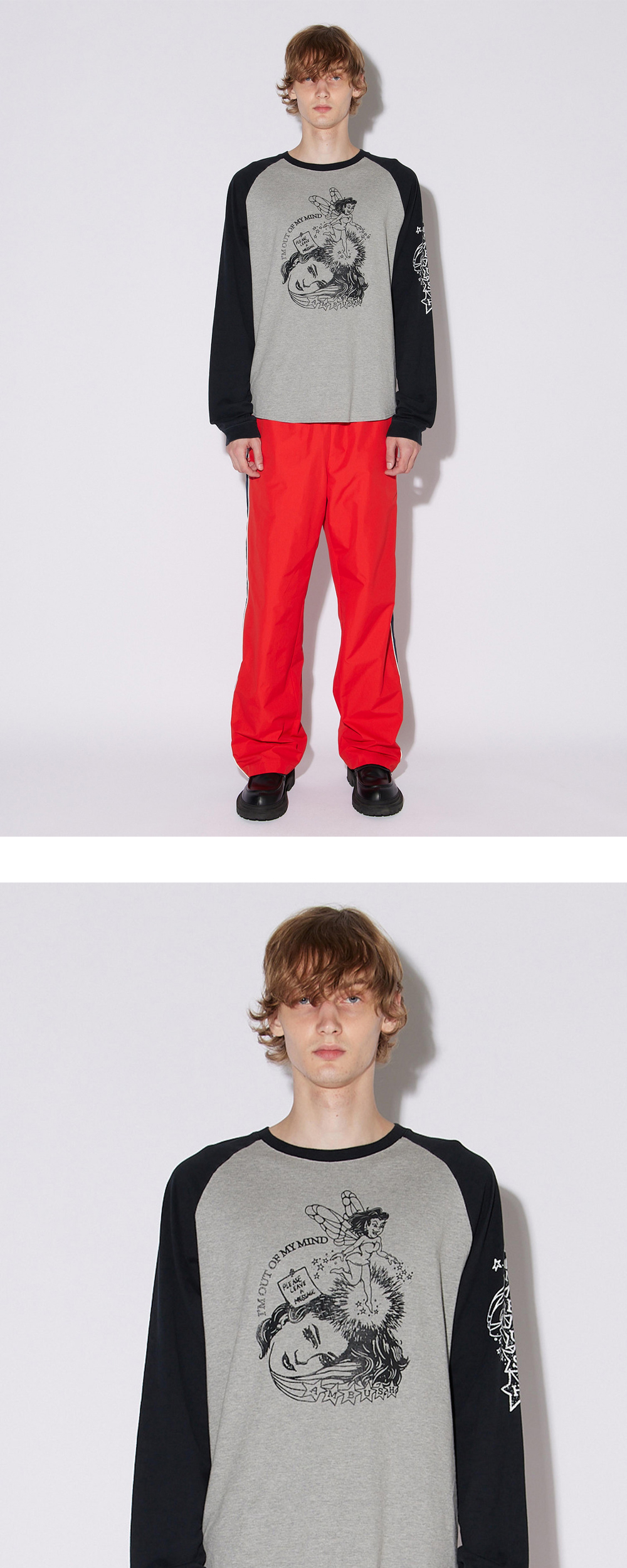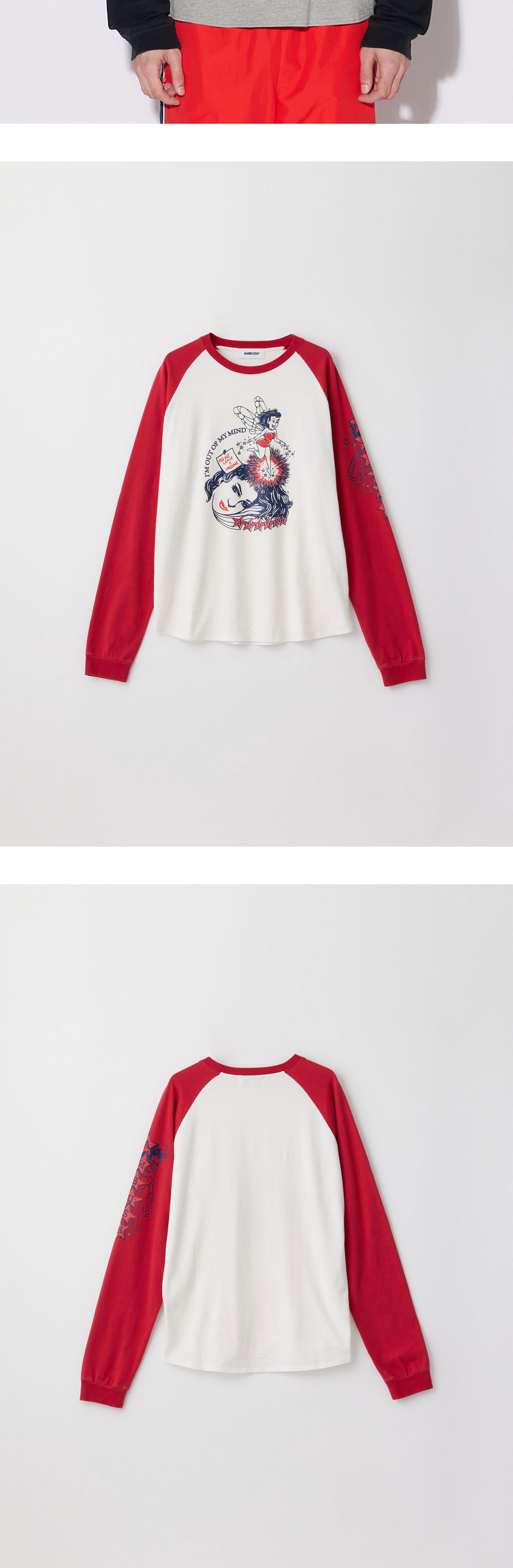 소매의 레드 색상과 그래픽이 매력적인 앰부쉬의 래글런 롱 슬리브 티셔츠 화이트입니다. - 소매와 앞면에 그래픽 디테일 - 나그랑 디자인 - 면 100% * 모델 컷은 참고를 위한 이미지이며 같은 제품의 다른 컬러 제품입니다.