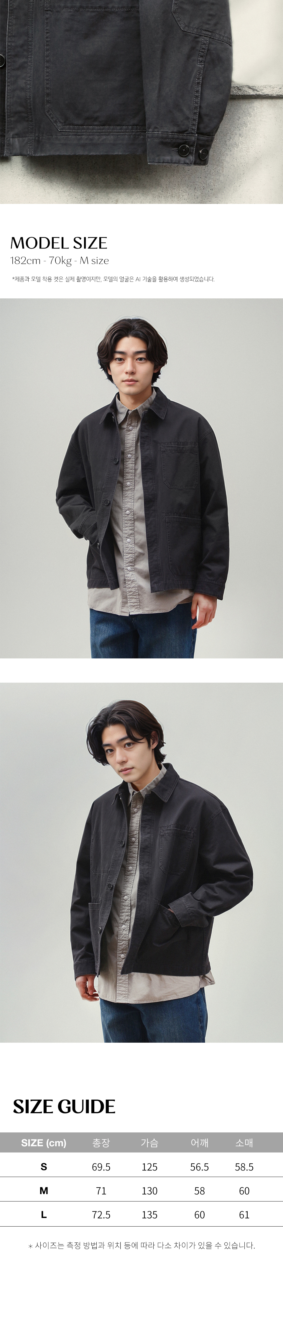 | 총장 | 어깨너비 | 가슴단면 | 소매길이 |