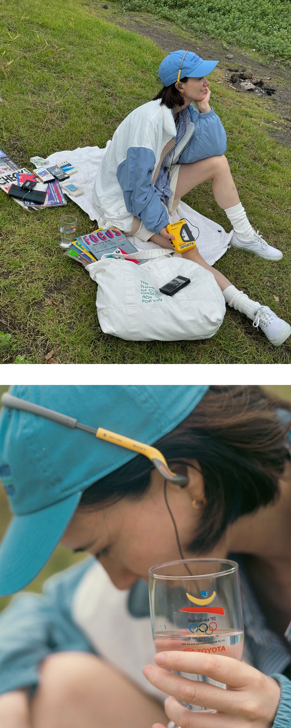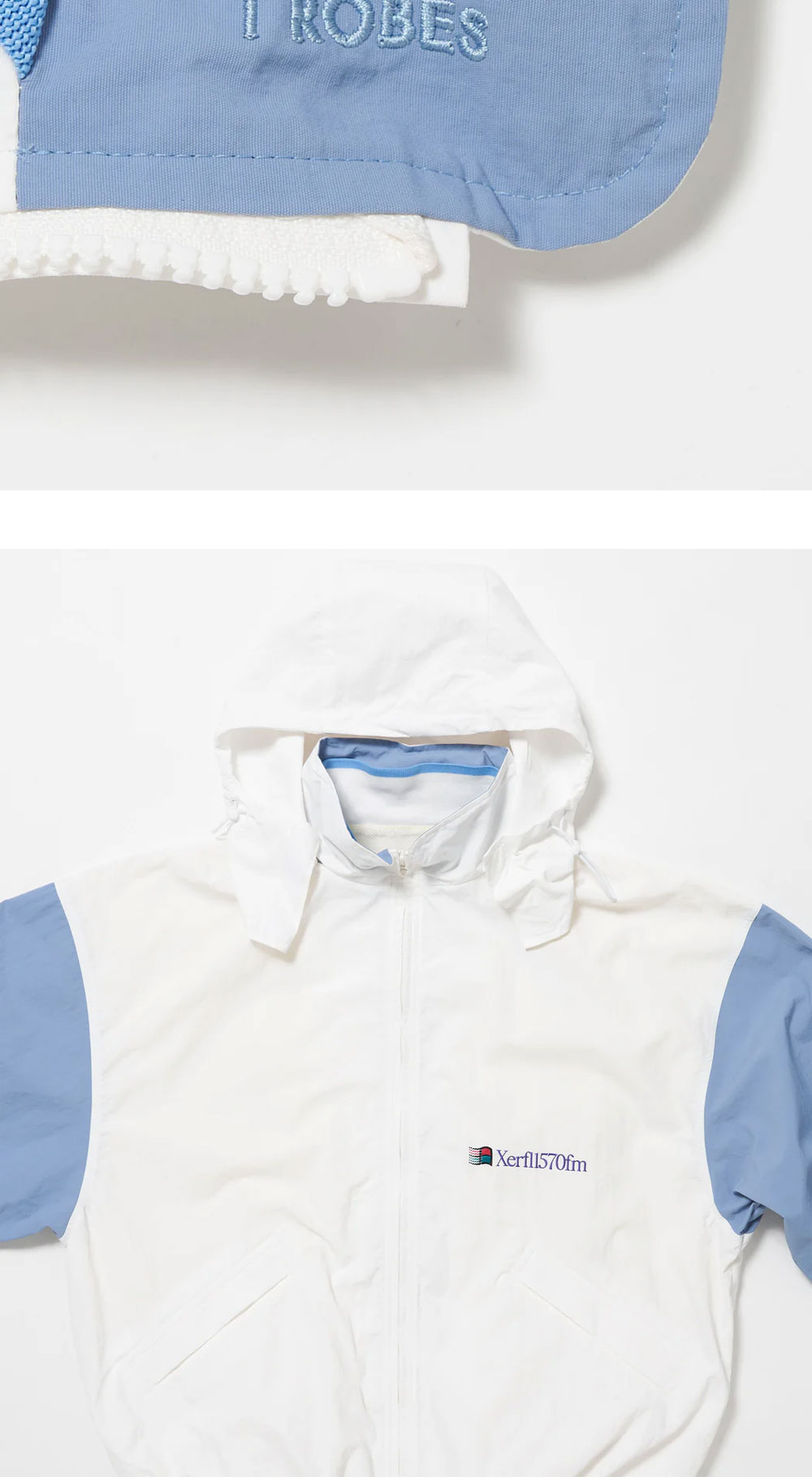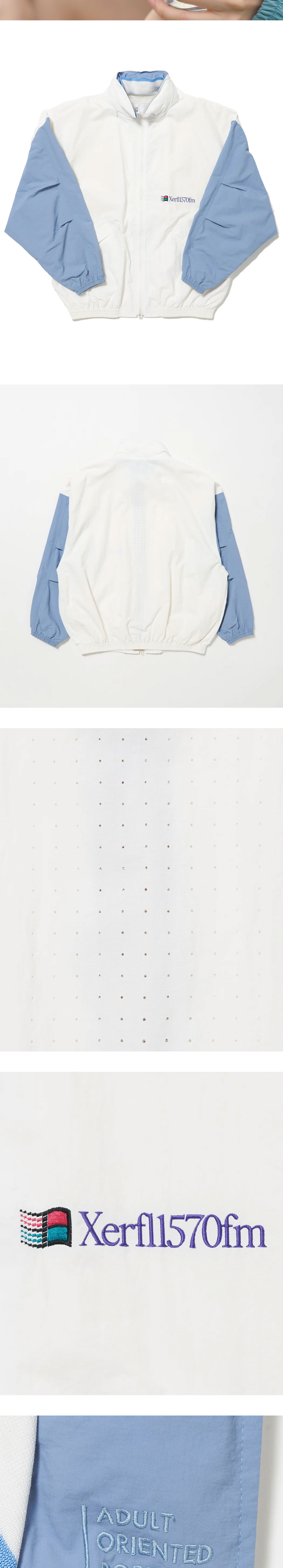 향수를 불러일으키는 AOR의 아주리 화이트 재킷입니다. -화이트와 블루 배색의 나일론 재킷 -1992년 이탈리아 축구 대표팀의 트랙수트를 오마주한 디자인