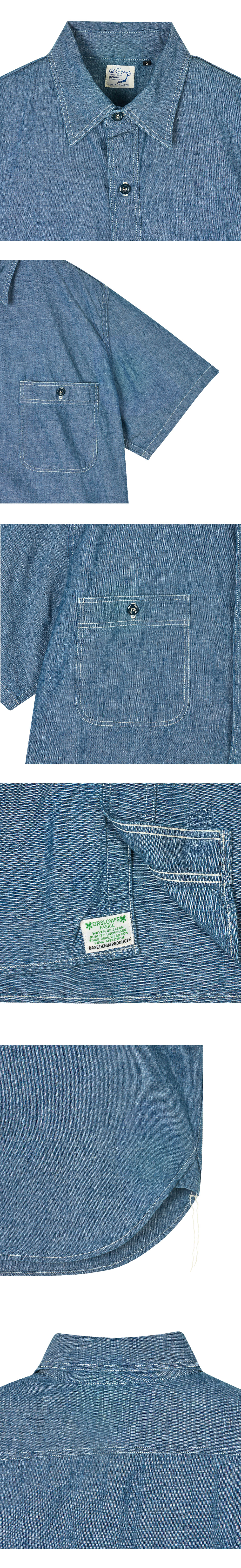 오어슬로우 쇼트 슬리브 워크 셔츠 샴브레이 - 25SS