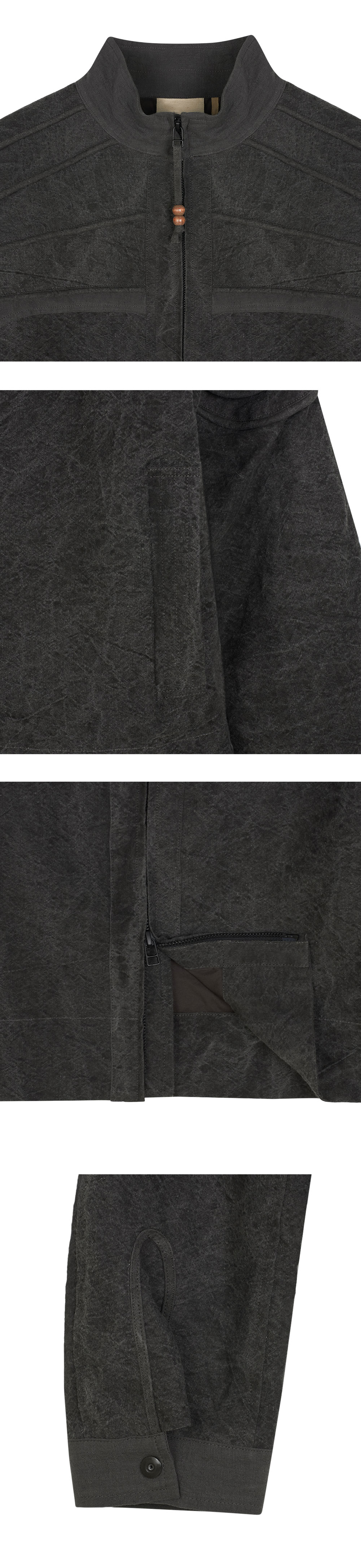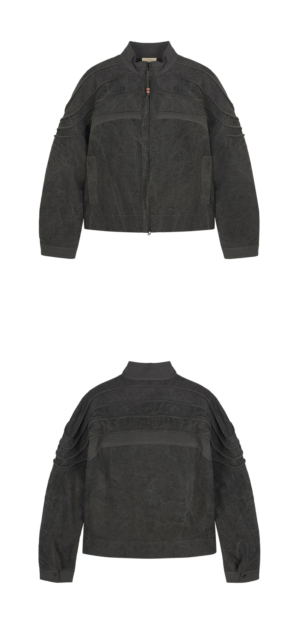 곡선적, 입체적인 움직임이 있는 디자인이 특징인 지안 예의 헤럴드 자켓 차콜입니다. - 투웨이 지퍼 - 시그니처인 우드 소재의 구슬 지퍼 패스너 - 남여공용 - 독특한 소재감