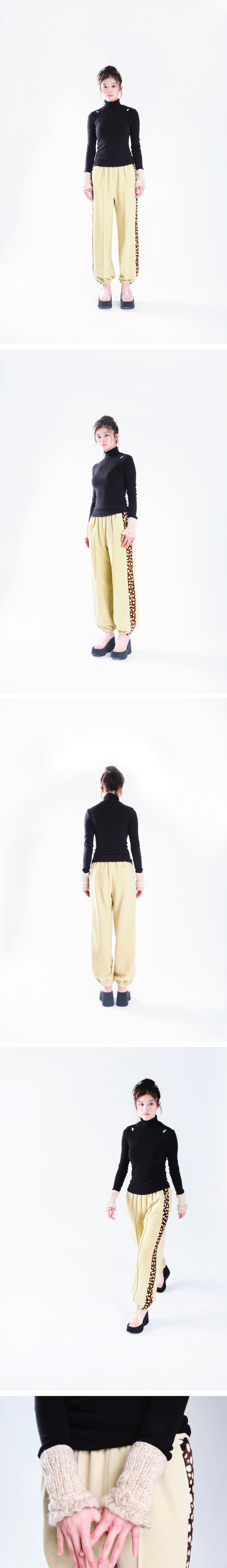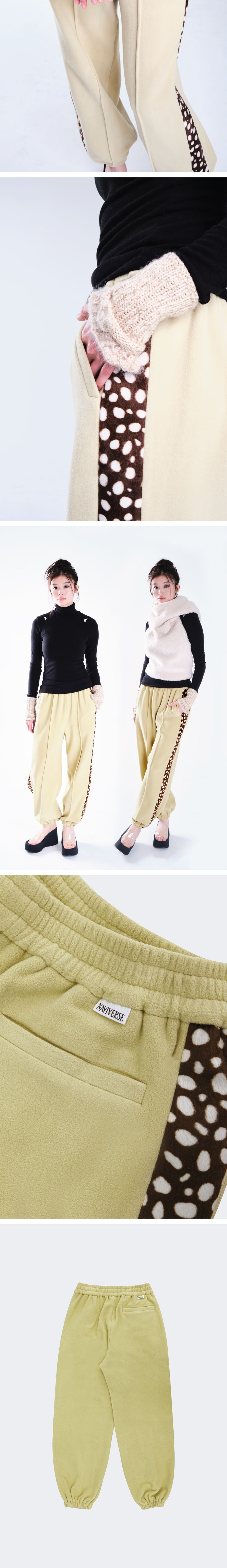 • 부드럽고 따뜻한 플리스 원단과 카우 패턴 원단 배색 • 정면 턱 스티치 • 여유로운 실루엣