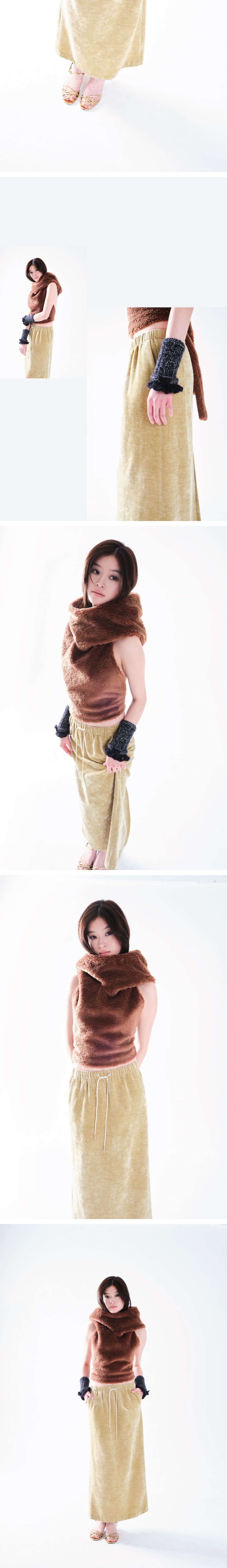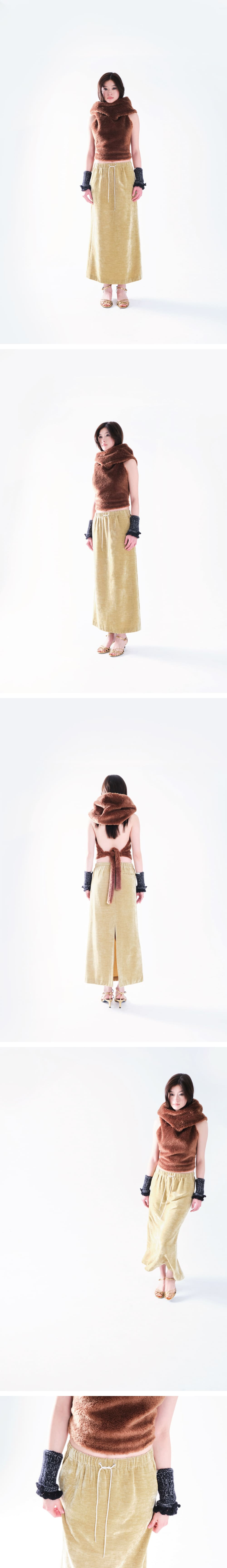 • 롱한 기장감의 벨벳 맥시 스커트 • 뒷면 절개 디자인 • 포켓 라인 큐빅 디테일