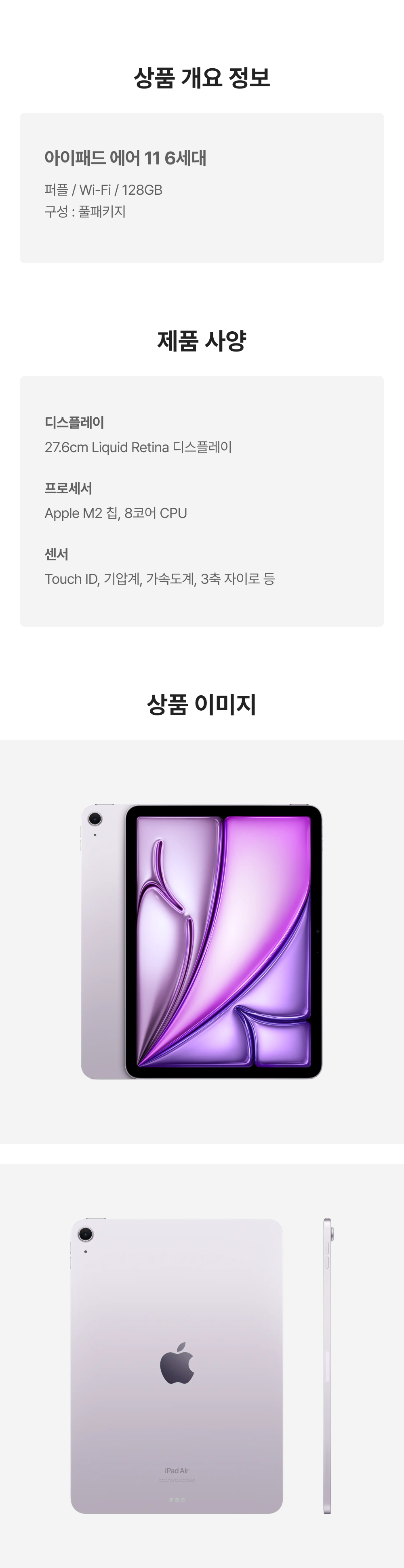 [S등급] 리퍼비시 아이패드 에어 11 6세대 wifi Apple M2 128기가 퍼플