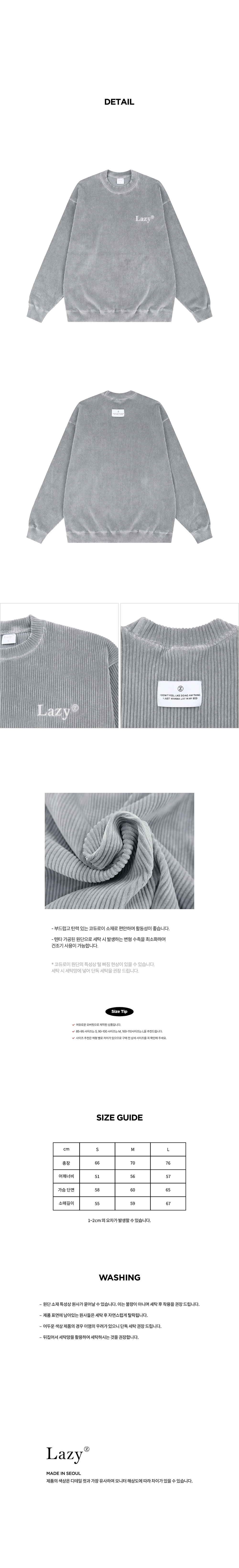 레이지지 레이지 코듀로이 스웨트셔츠 그레이