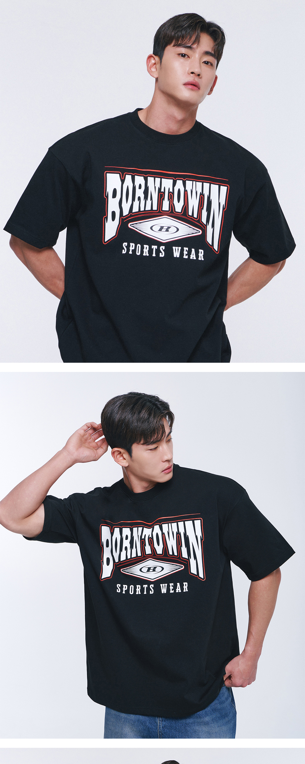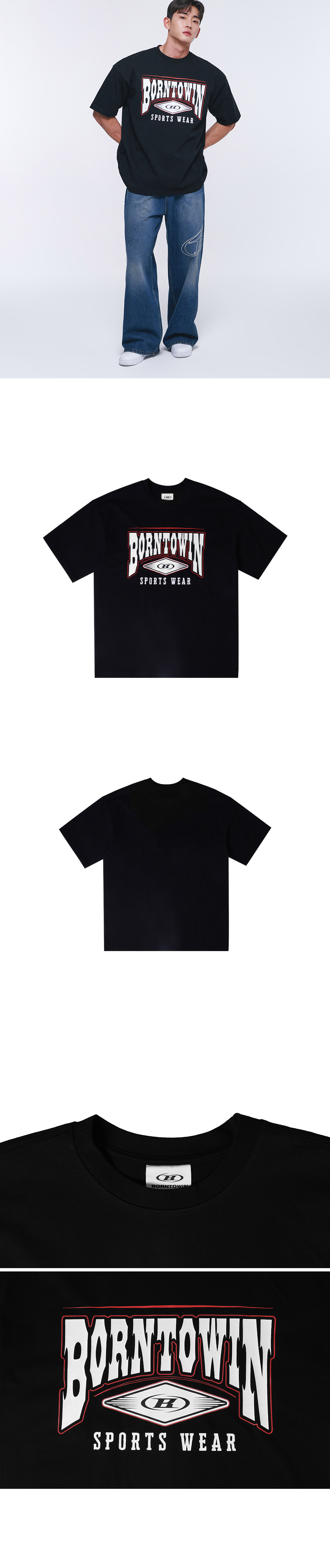 본투윈 스퀘어 아치 세미 오버핏 티셔츠 블랙