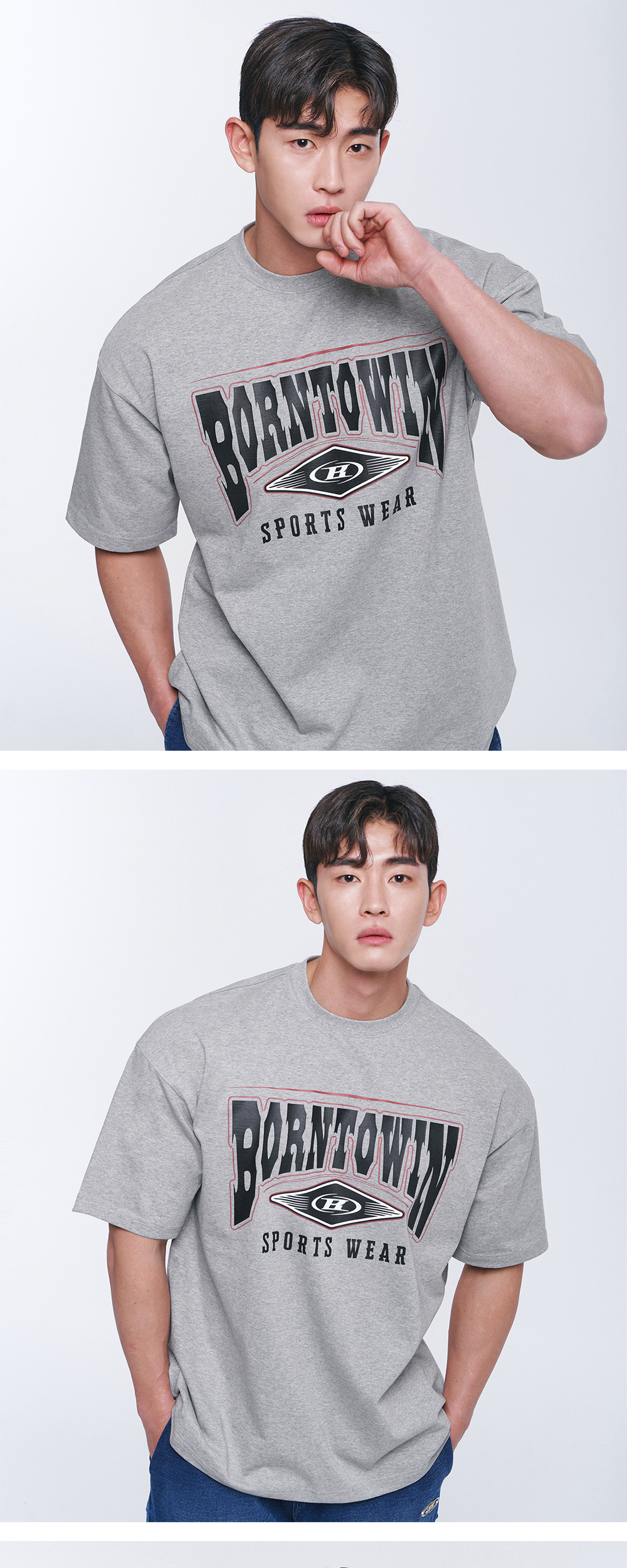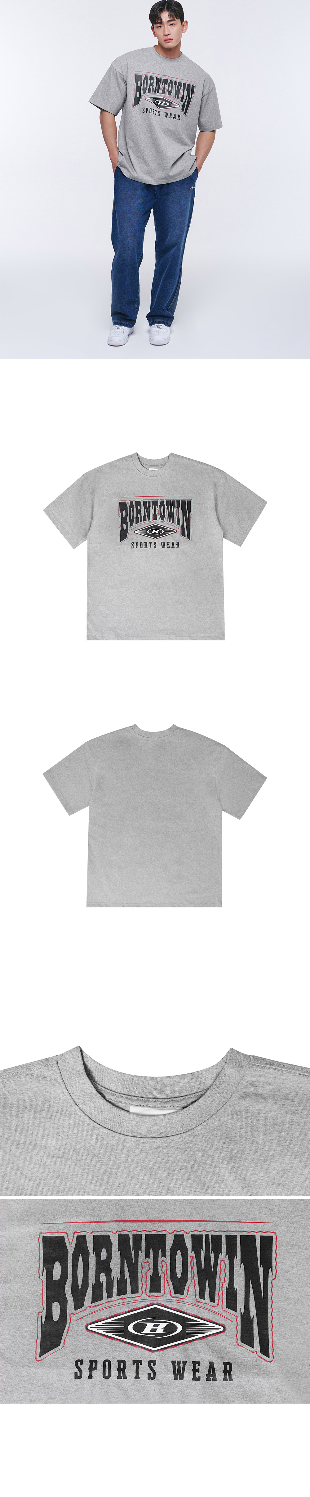본투윈 스퀘어 아치 세미 오버핏 티셔츠 멜란지 그레이
