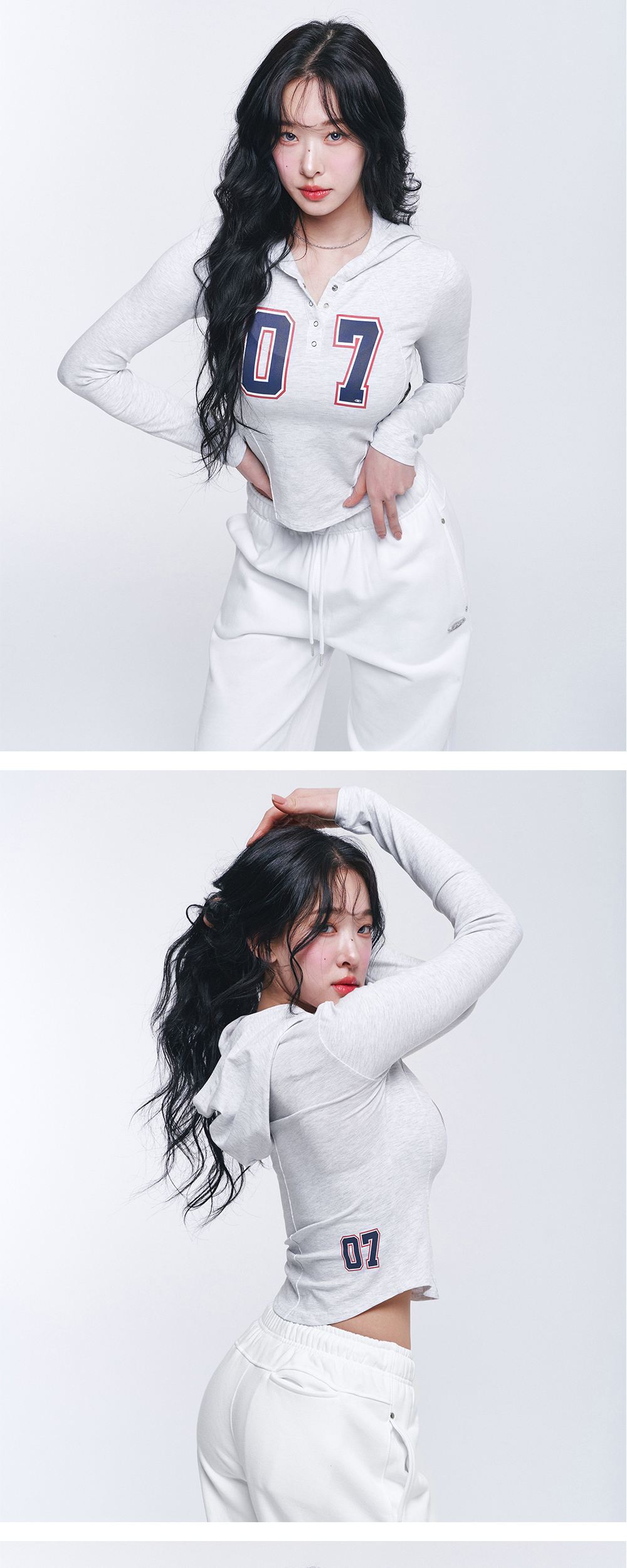 [DETAILS] * 우먼스 넘버 핀턱 스냅 후디 - 코튼스판 원단 - 스냅 버튼 여밈 - 2줄 핀턱 라인 - 스포티 무드 넘버링 그래픽 - 크롭핏 Material : Cotton 95%, Polyurethane 5% Fitting : DB 2 Size, 171cm, 57kg