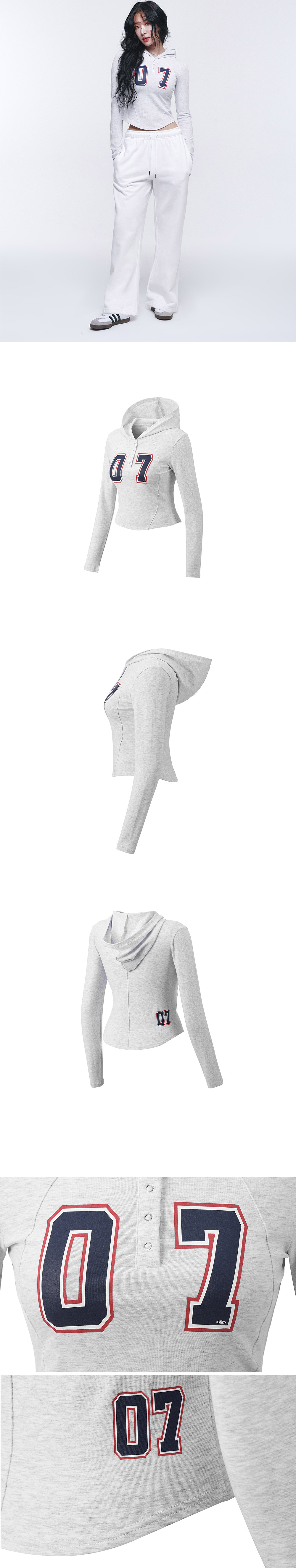 본투윈 우먼스 넘버 핀턱 스냅 후디 화이트 멜란지 그레이