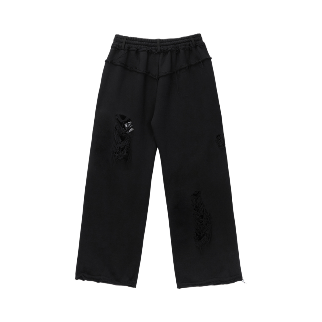 (W) 트리밍버드 스크래치 데미지 와이드 스웨트팬츠 블랙