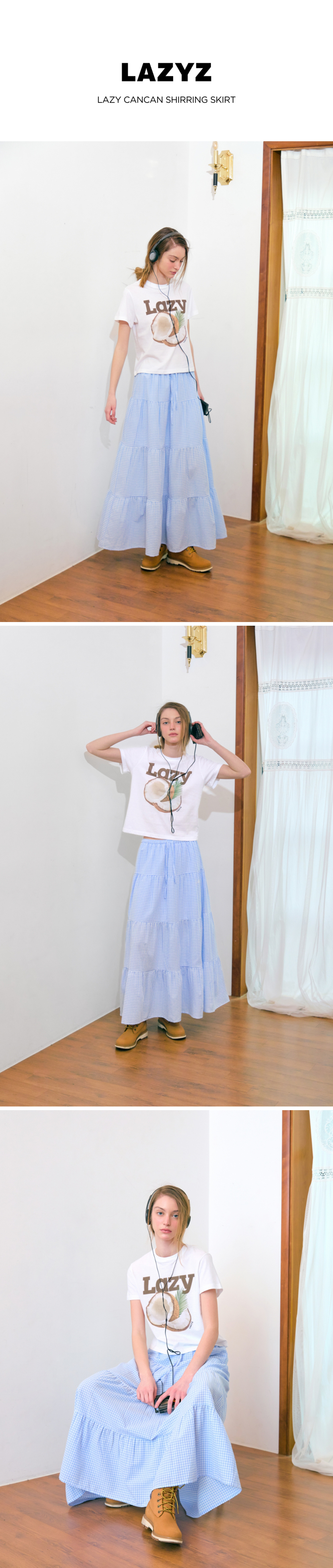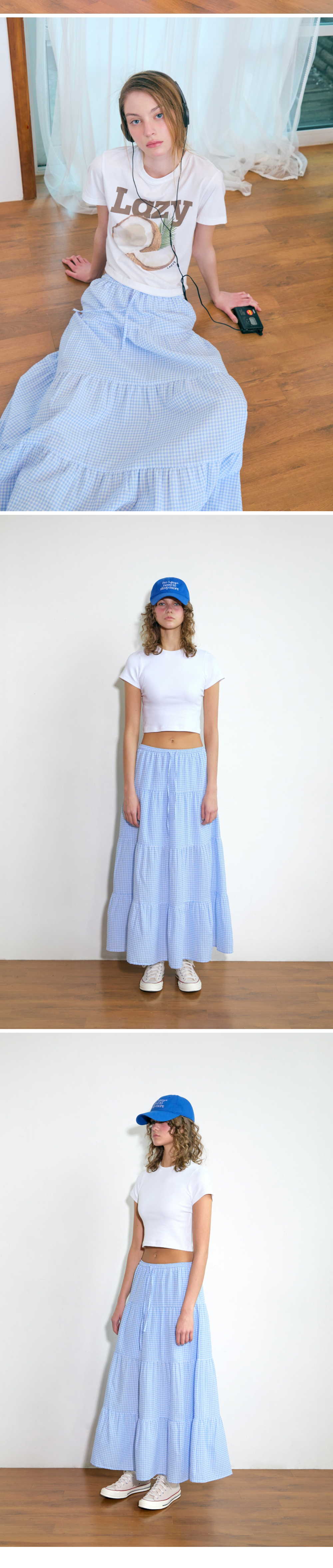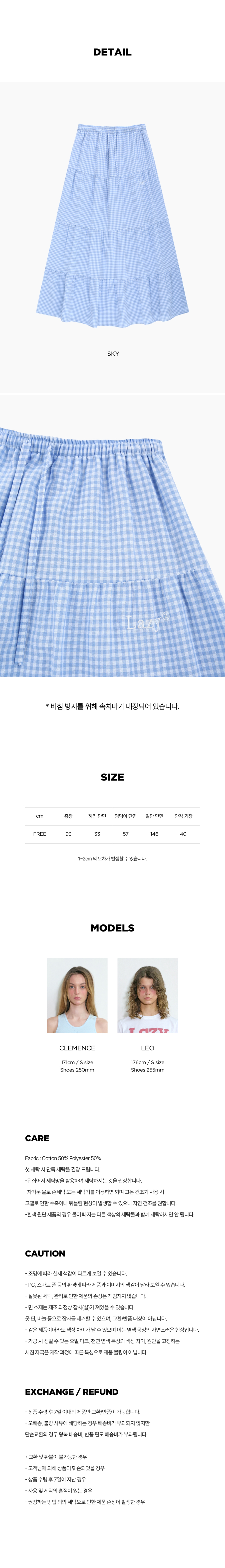레이지지 캉캉스커트 깅엄 스카이