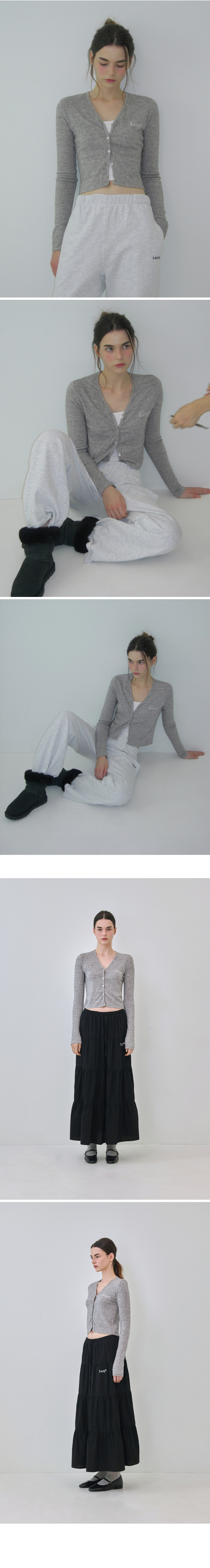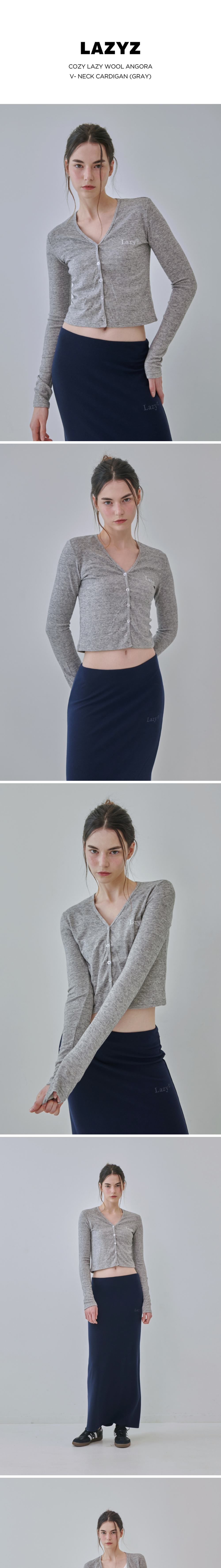 레이지지 코지 레이지 울 앙고라 브이넥 가디건 그레이