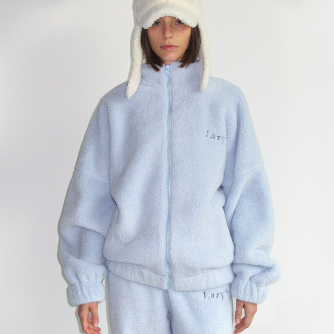 Lazyz Cozy Fuzzy Oversized Fleece Jacket Sky