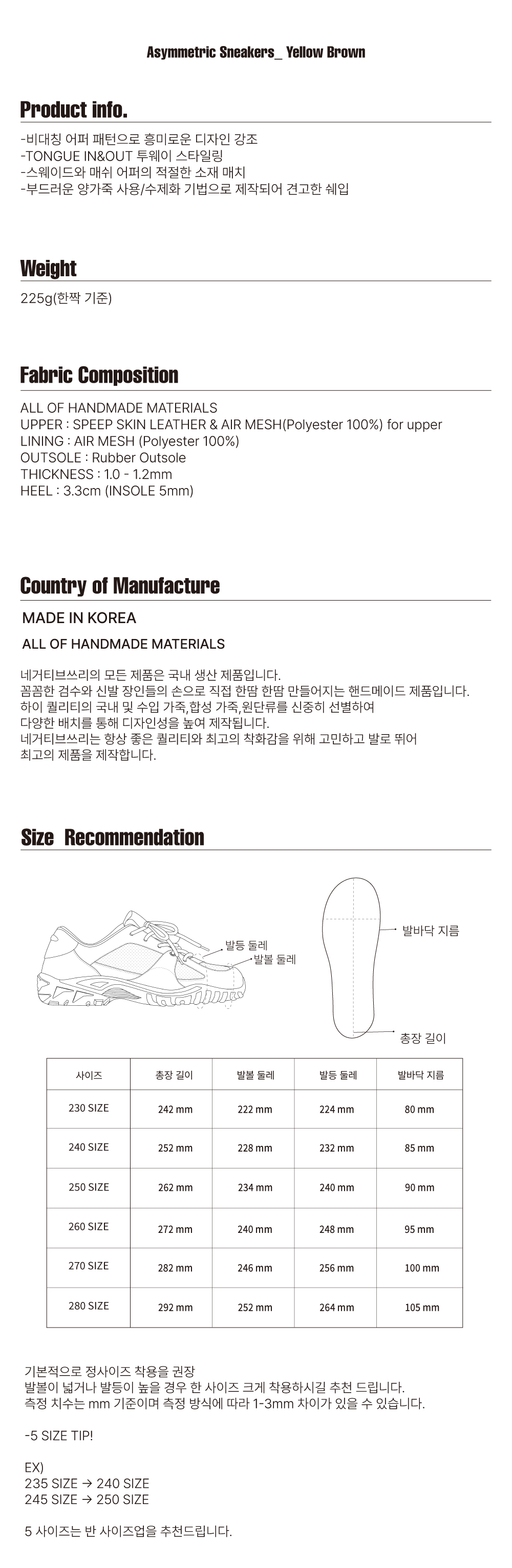 네거티브쓰리 비대칭 스니커즈 엘로우 브라운