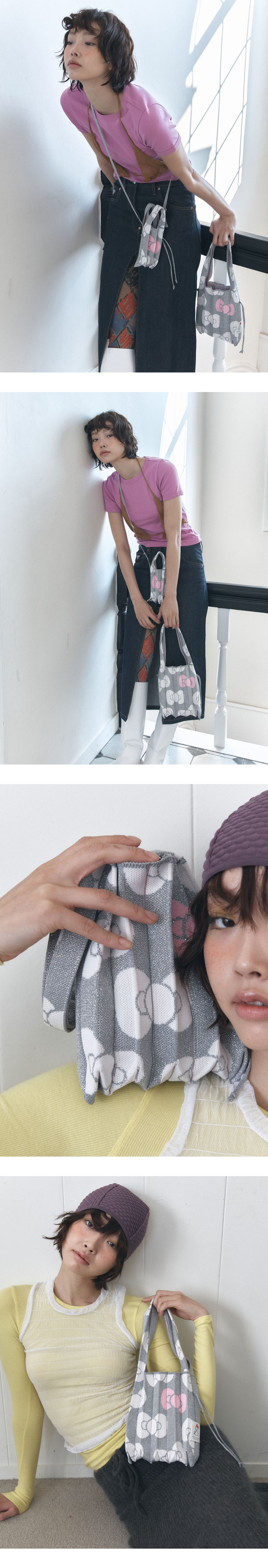 Joseph&Stacey Lucky Pleats Knit S Leopard Hello Kitty Platinum