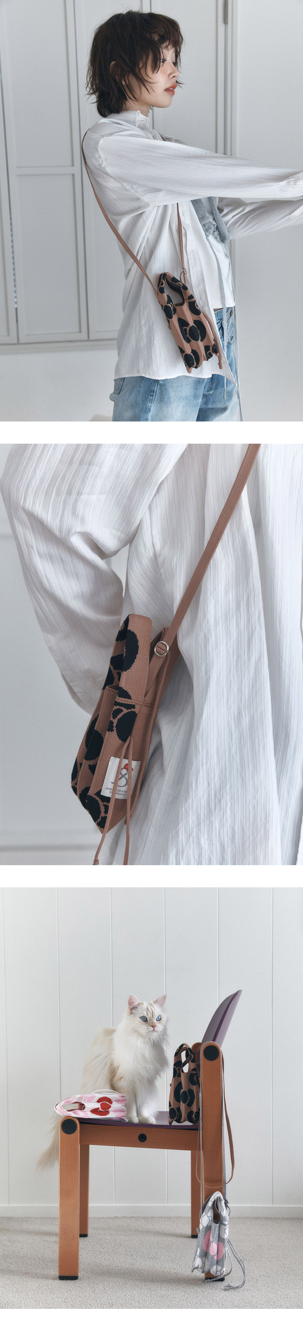 조셉앤스테이시 럭키 플리츠 니트 미니 크로스 레오파드 헬로키티 탄 브라운