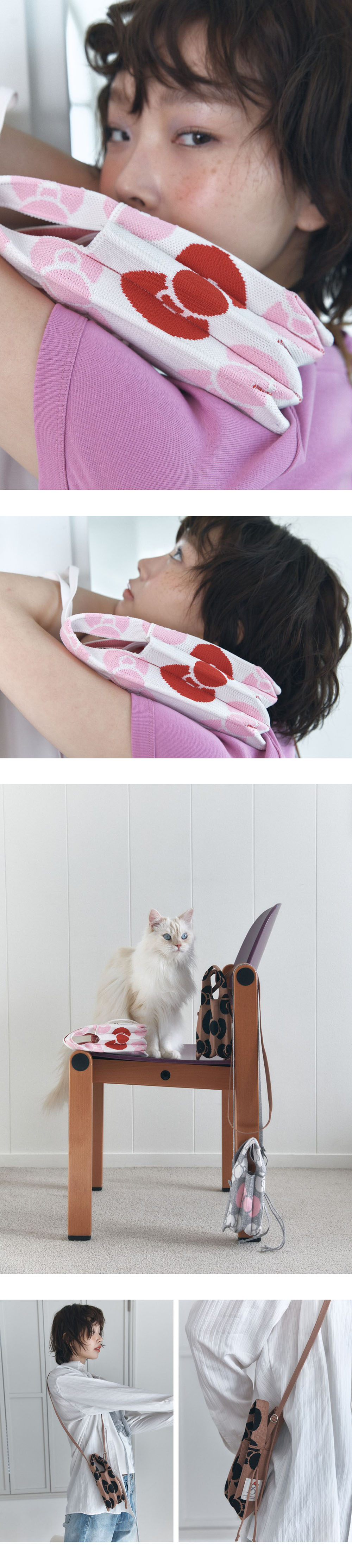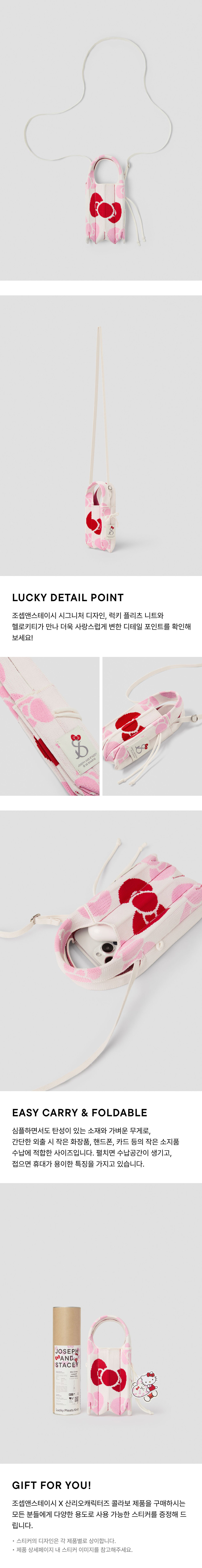 조셉앤스테이시 럭키 플리츠 니트 미니 크로스 레오파드 헬로키티 크림 화이트