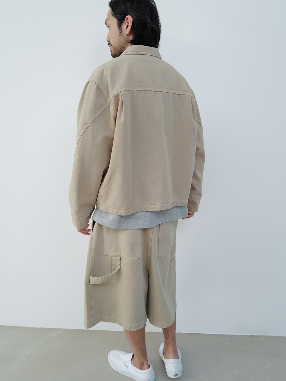 견고한 조직과 부드러운 터치감을 지닌 코튼 원단으로 제작된 데님 버뮤다 팬츠로 유니크한 블루 컬러의 오버 다잉 기법을 적용한 여유로운 핏의 버뮤다 팬츠 디자인으로, 백 포켓과 연결되는 루프 디테일로 포인트를 준 아이템입니다. 로고 각인된 캔톤과 심볼 로고가 음각으로 새겨진 개발 가죽 와펜을 부착하여 마무리하였습니다. *오버 다잉 가먼트 워싱 공정 특성 상 부자재 이염이 있을 수 있으며 이는 불량 상품이 아닌 점을 안내드립니다* 46 허리 40CM 엉덩이 58CM 허벅지 41CM 밑단 41.5CM 총장 66.5CM 앞밑위 44.5CM 48 허리 42.5CM 엉덩이 60.5CM 허벅지 42.5CM 밑단 42.5CM 총장 67.5CM 앞밑위 45.5CM 50 허리 45CM 엉덩이 63CM 허벅지 44CM 밑단 43.5CM 총장 68.5CM 앞밑위 46.5CM 치수는 재는 위치에 따라 1-3cm 차이 생길 수 있습니다. 180cm 마른체형 모델 48 SIZE 착용