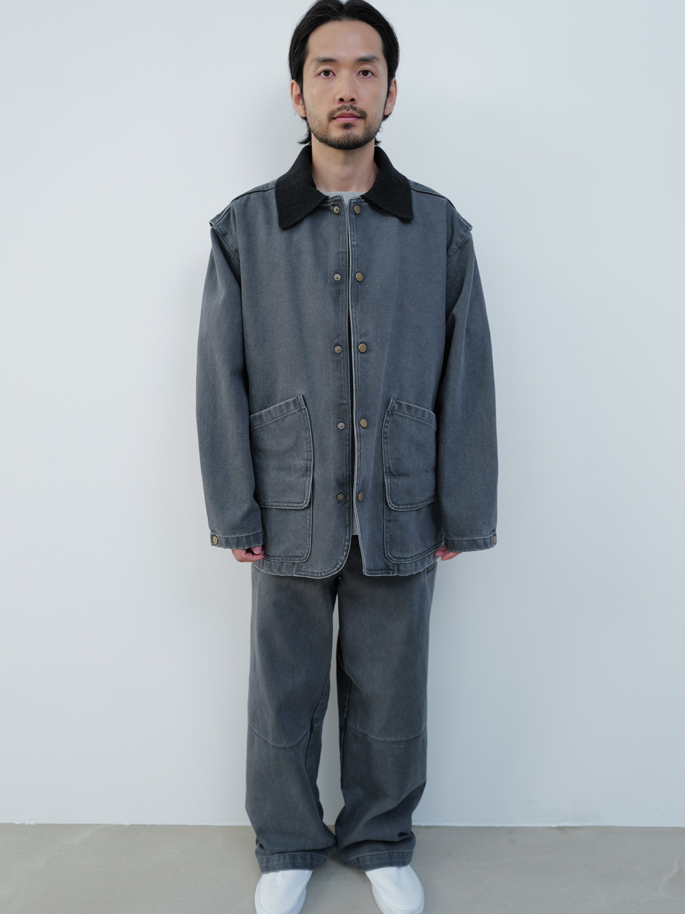 견고한 조직과 고급스러운 트윌 조직이 돋보이는 코튼 원단으로 제작한 팬츠입니다. 가먼트 워싱을 통한 부드러운 터치감과 빈티지한 무드가 돋보이는 스트레이트 핏의 팬츠 디자인으로, 양쪽 사이드 포켓 디테일로 포인트와 편리함을 더했습니다. 로고 각인된 소뿔 단추로 마무리하였습니다. 46 허리 40.5CM 엉덩이 50.5CM 허벅지 33CM 밑단 25CM 총장 104.5CM 앞밑위 32.5CM 48 허리 43CM 엉덩이 53CM 허벅지 34.5CM 밑단 26CM 총장 105.5CM 앞밑위 33.5CM 50 허리 45.5CM 엉덩이 55.5CM 허벅지 36CM 밑단 27CM 총장 106.5CM 앞밑위 34.5CM 치수는 재는 위치에 따라 1-3cm 차이 생길 수 있습니다. 어두운 원단은 염색되었기 때문에 밝은 아이템과 착용 시 주의 부탁드립니다. DRY CLEAN ONLY 180cm 마른체형 모델 48 SIZE 착용