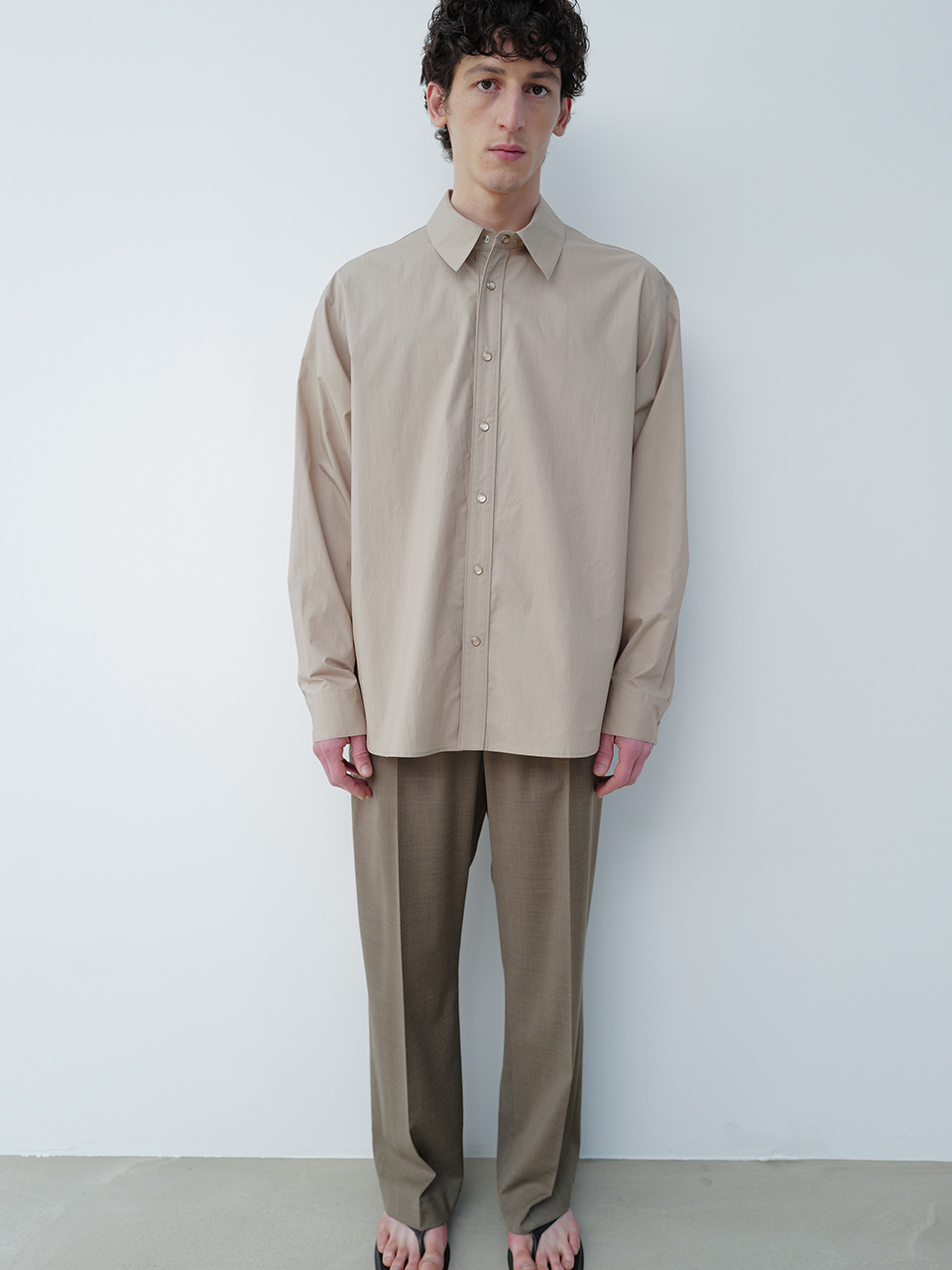 페이퍼 코팅 공정을 통한 청량감이 특징인 코튼 소재로 제작한 셔츠입니다. 박시한 실루엣의 스텐다드 셔츠 디자인으로 프론트 단작에 웨스턴 셔츠에서 영감받은 디테일을 가미해 유니크함을 더했습니다. 가시 스냅과 개발한 심볼 금속 장식으로 마무리하였습니다. *염색한 스냅으로 가장자리에 염색으로 인한 얼룩이 있을 수 있음* 46 어깨 51.5CM 가슴 62CM 총장 77CM 밑단 64CM 소매 65.5CM 48 어깨 53.5CM 가슴 64.5CM 총장 78CM 밑단 66.5CM 소매 66.5CM 50 어깨 55.5CM 가슴 67CM 총장 79CM 밑단 69CM 소매 67.5CM 치수는 재는 위치에 따라 1-3cm 차이 생길 수 있습니다. 어두운 원단은 염색되었기 때문에 밝은 아이템과 착용 시 주의 부탁드립니다. DRY CLEAN ONLY 180cm 마른체형 모델 48 SIZE 착용