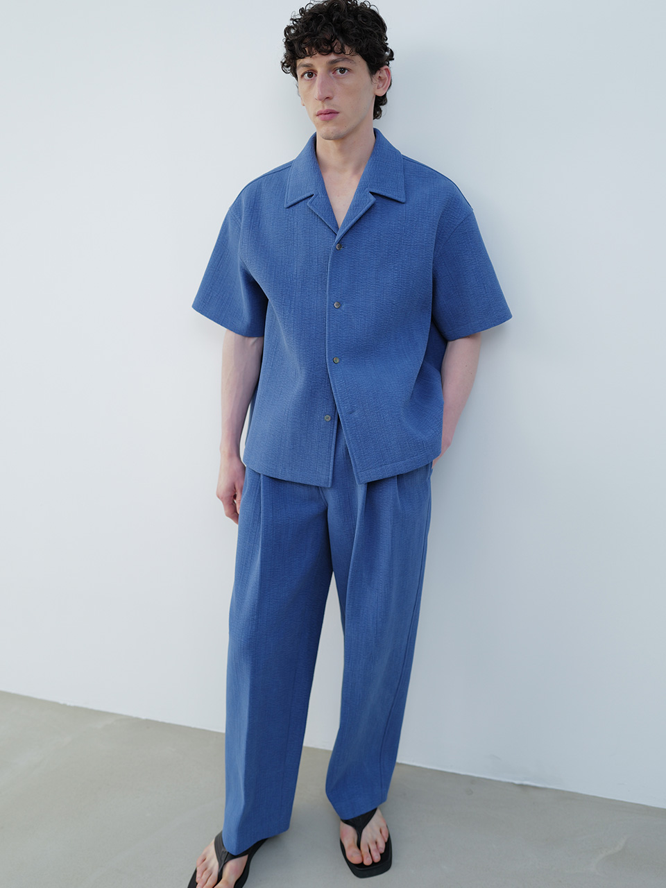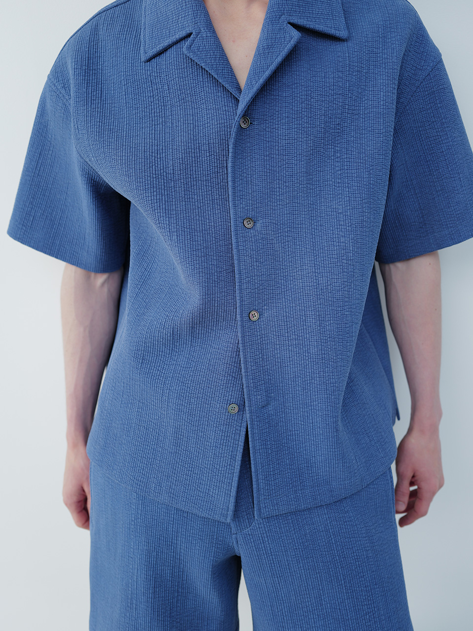 골지 소재의 코튼 원단으로 제작한 하프 슬리브 셔츠입니다. 오버 사이즈 실루엣의 오픈 칼라 셔츠 디자인으로 소재 특유의 고시감으로 풍성한 실루엣을 연출할 수 있습니다. 로고 각인된 자개 단추와 개발한 심볼 금속 장식으로 마무리하였습니다. QUILTED SHORTS, QUILTED BERMUDA PANTS, QUILTED PANTS와 셋업으로 착용 가능합니다. *염색한 원단으로 밝은 옷과 입을 시 이염이 있을 수 있음* 46 어깨 59CM 가슴 59.5CM 총장 67.5CM 밑단 60.5CM 소매 22CM 48 어깨 61CM 가슴 62CM 총장 68.5CM 밑단 63CM 소매 23CM 50 어깨 63CM 가슴 64.5CM 총장 69.5CM 밑단 65.5CM 소매 24CM 치수는 재는 위치에 따라 1-3cm 차이 생길 수 있습니다. 어두운 원단은 염색되었기 때문에 밝은 아이템과 착용 시 주의 부탁드립니다. DRY CLEAN ONLY 180cm 마른체형 모델 48 SIZE 착용