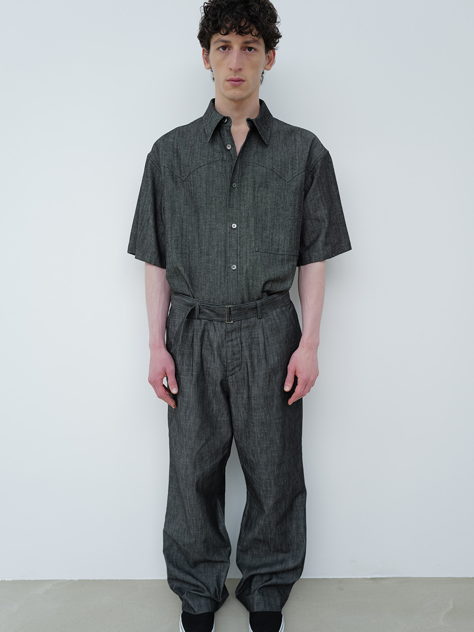 르917 웨스턴 요크 하프 슬리브 데님 셔츠 블랙