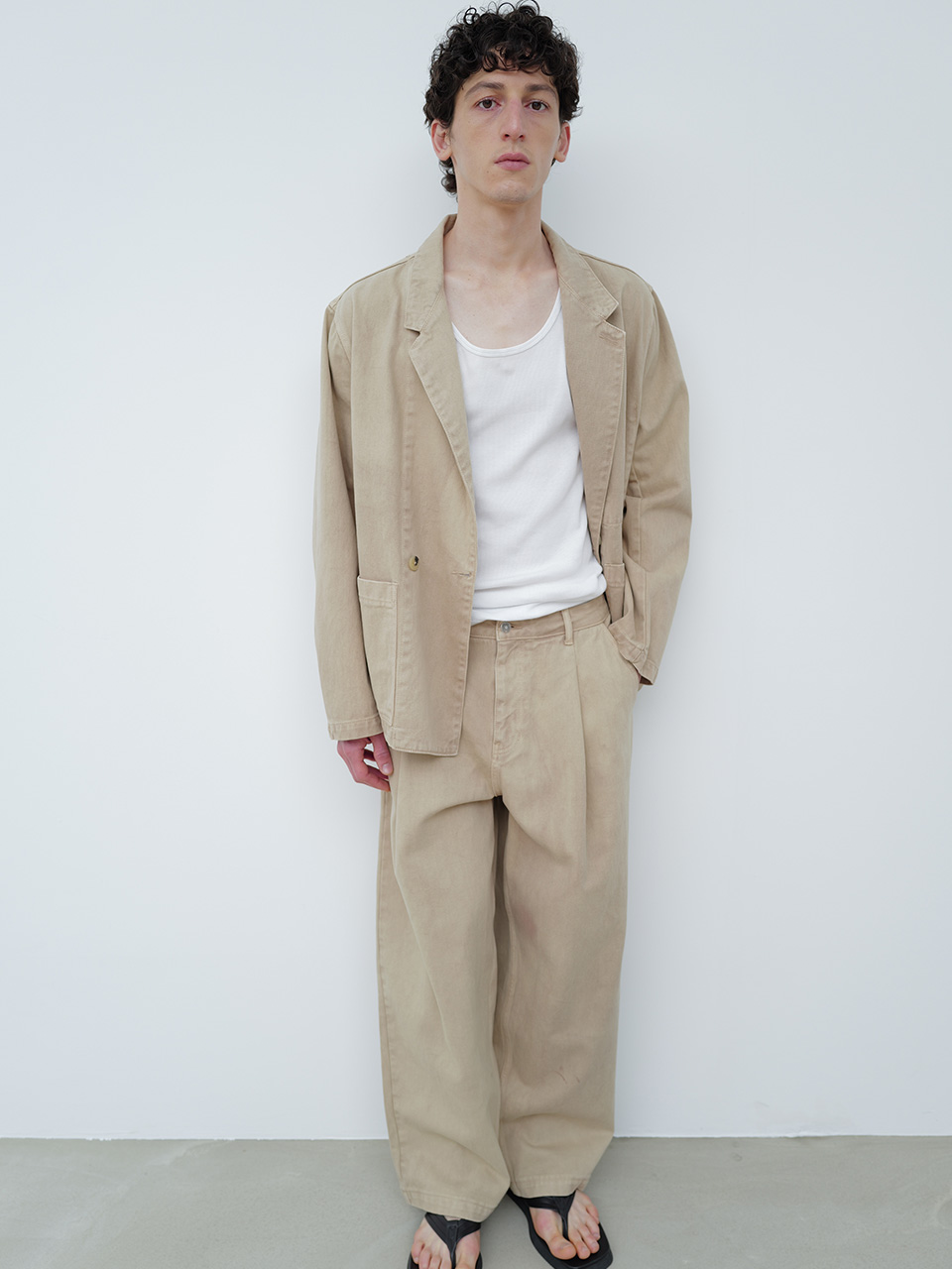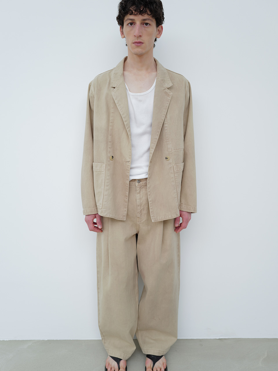 르917 오버 다잉 더블 브레스티드 데님 자켓 베이지