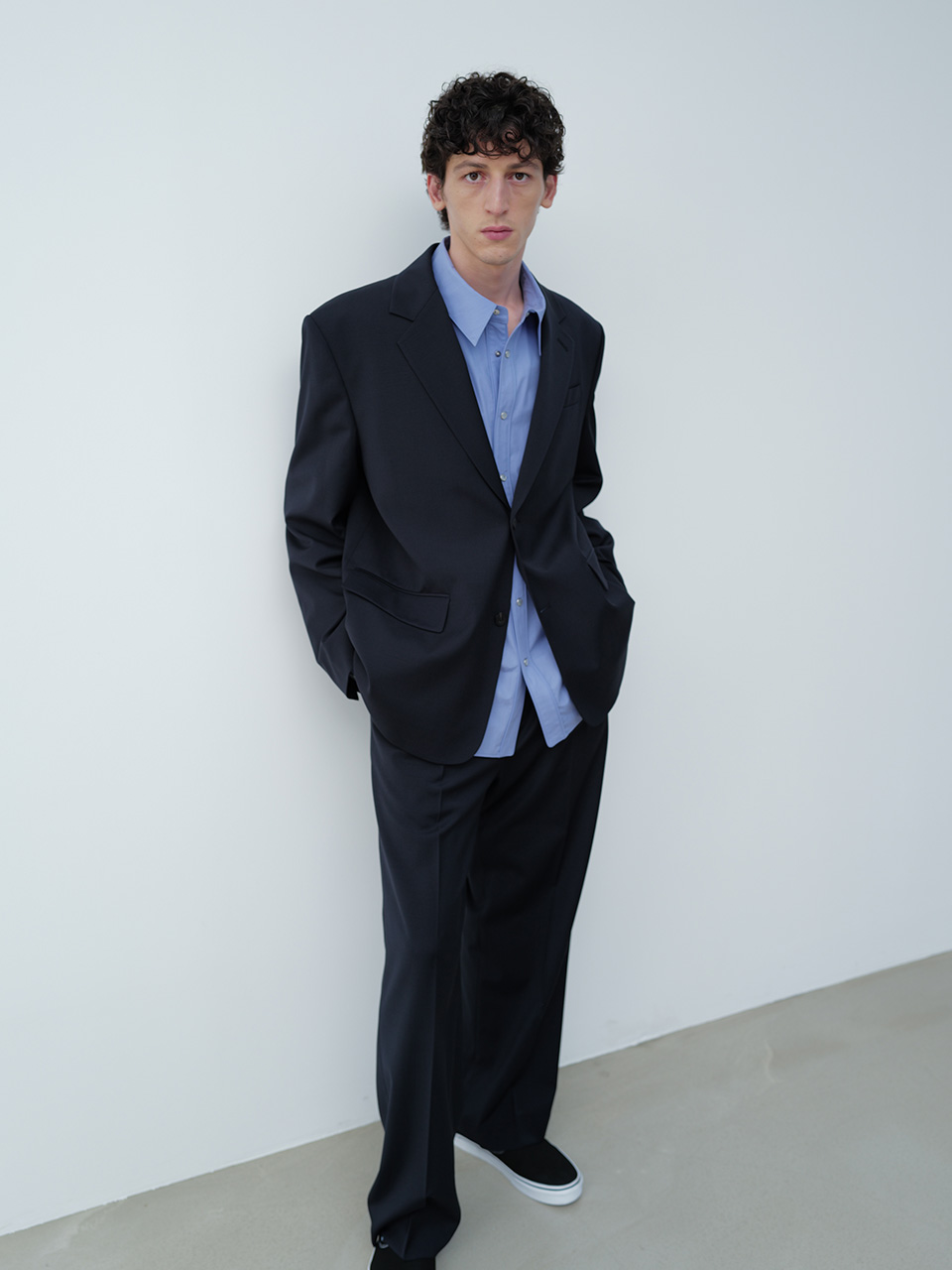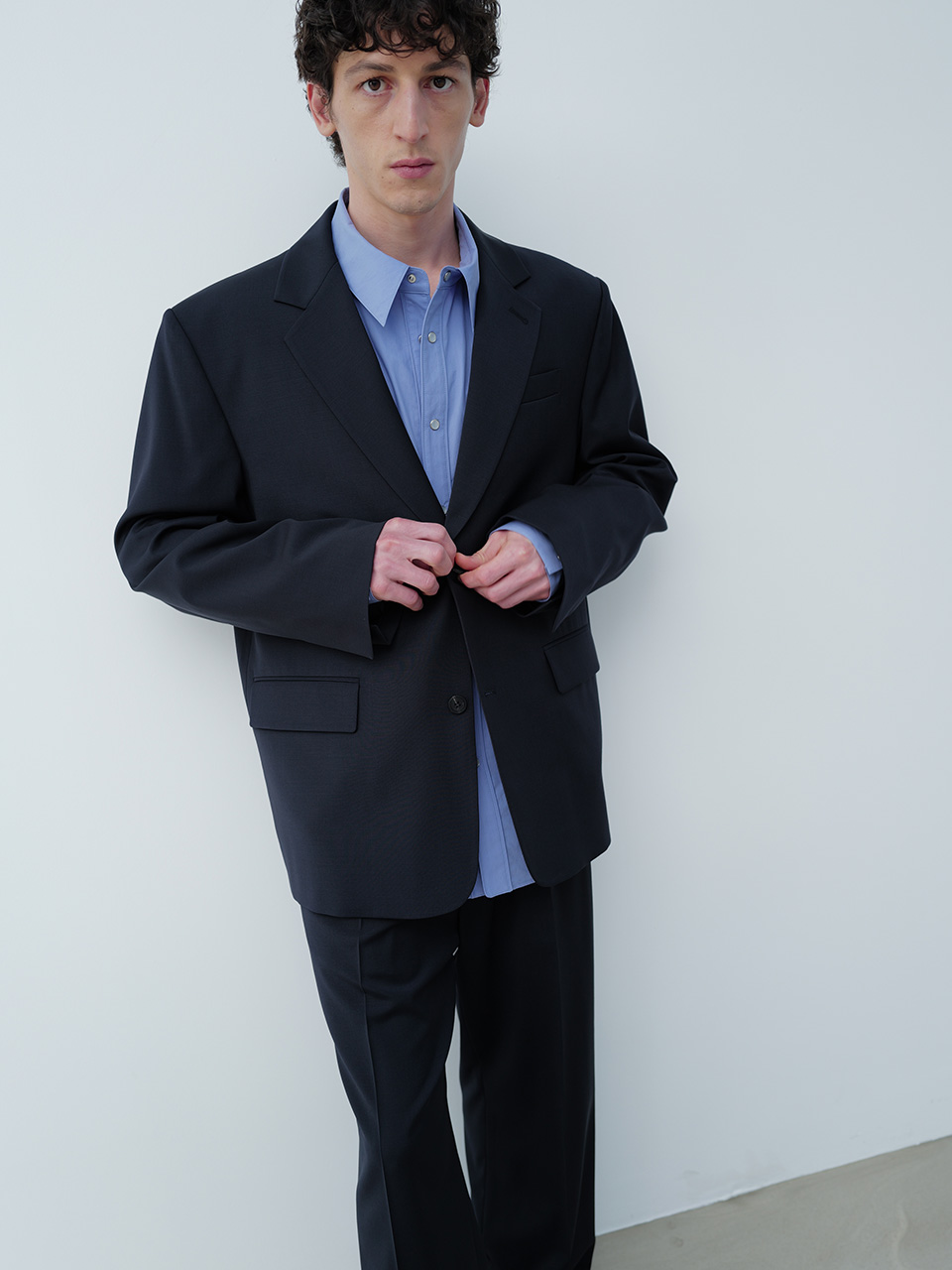 가벼운 울 혼방 원단으로 제작한 테일러드 싱글 브레스티드 자켓입니다. 노치드 라펠의 세미 오버사이즈 실루엣의 테일러드 자켓 디자인으로, 클래식한 테일러드 봉제 기법으로 비 접착 라이닝과 어깨 패드가 있어 견고하면서도 체형 보완이 용이하도록 제작되었습니다. 전체적으로 들어간 라이닝과 센터 벤트를 통해 깔끔하면서 편안한 착용감을 제공하며 로고 각인된 소뿔 단추로 마무리하였습니다. 46 어깨 50CM 가슴 58.5CM 총장 77CM 밑단 58.5CM 소매 65CM 48 어깨 52CM 가슴 61CM 총장 78CM 밑단 61CM 소매 66CM 50 어깨 54CM 가슴 63.5CM 총장 79CM 밑단 63.5CM 소매 67CM 치수는 재는 위치에 따라 1-3cm 차이 생길 수 있습니다. 어두운 원단은 염색되었기 때문에 밝은 아이템과 착용 시 주의 부탁드립니다. DRY CLEAN ONLY 180cm 마른체형 모델 48 SIZE 착용
