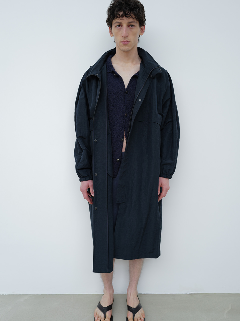 탄탄한 조직의 요철감과 청량감이 특징인 나일론 소재로 제작한 오버 코트입니다. 풍성한 실루엣의 래글런 슬리브 코트 디자인으로, 전면부 패널 포켓 디테일로 포인트를 주었습니다. 후드를 네크 안쪽으로 접어 넣어서 연출 가능합니다. COBRAX 사의 견고한 스냅과 개발한 심볼 로고 슬라이더로 마무리하였습니다. 46 가슴 70.5CM 총장 117CM 밑단 70.5CM 소매 80CM 48 가슴 73CM 총장 118CM 밑단 73CM 소매 81.5CM 50 가슴 75.5CM 총장 119CM 밑단 75.5CM 소매 83CM 치수는 재는 위치에 따라 1-3cm 차이 생길 수 있습니다. 어두운 원단은 염색되었기 때문에 밝은 아이템과 착용 시 주의 부탁드립니다. DRY CLEAN ONLY 180cm 마른체형 모델 48 SIZE 착용