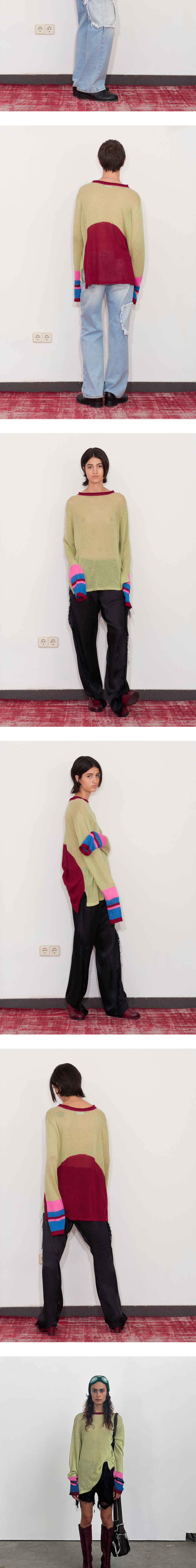 Edward Cuming Linen Cotton Half Moon Loose Sweater Lime Sangria Pink Blue - 25SS