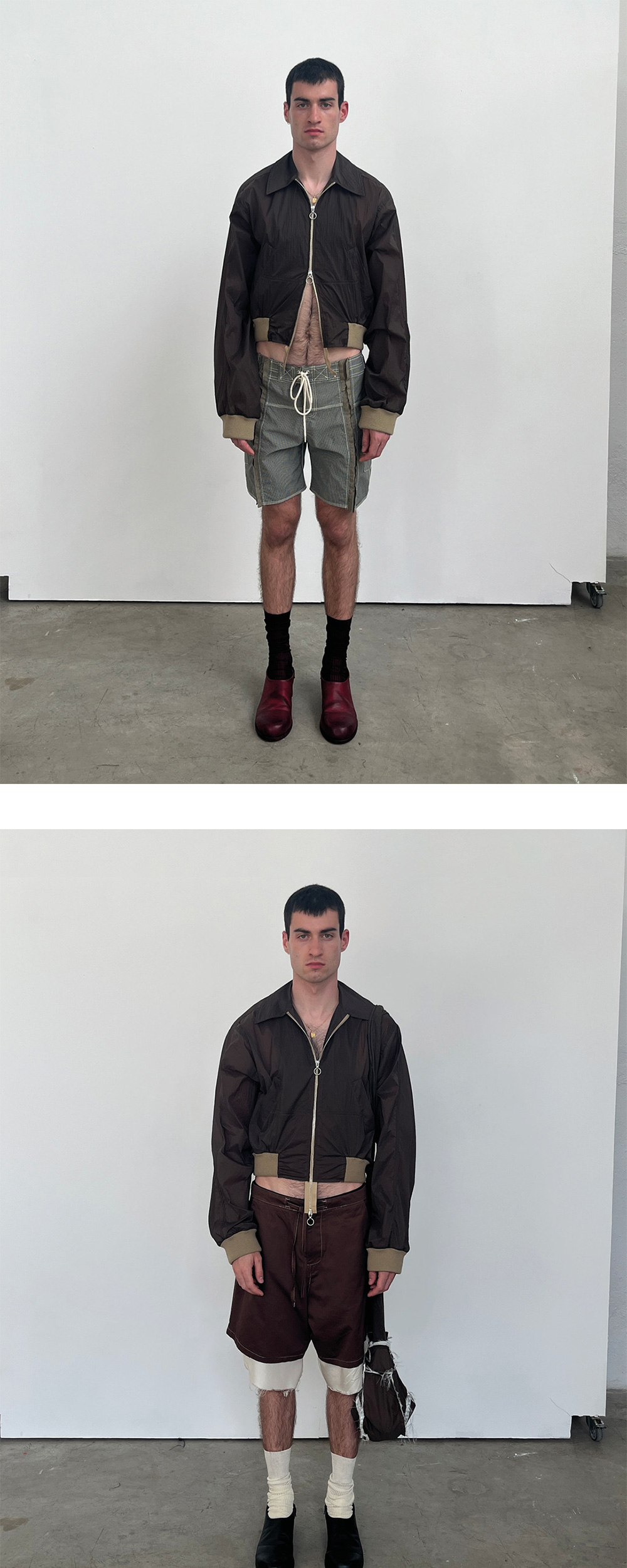 에드워드 커밍 크링클 나일론 바텀 헤비 테크 봄버 카키 그레이 - 25SS