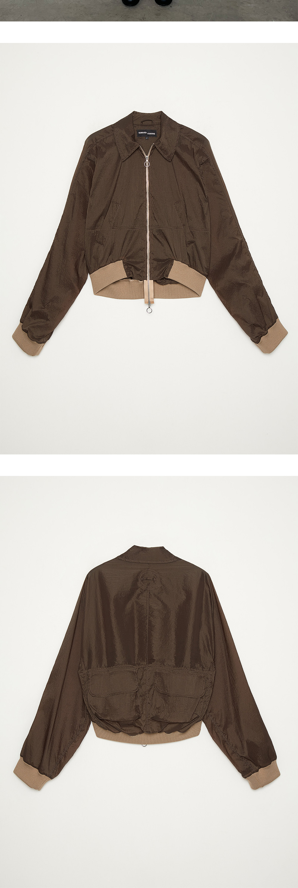 가벼운 나일론 재질으로 활용성이 좋은 EDWARD CUMING의 크링클 나일론 바텀 헤비 테크 봄버 Khaki Grey입니다. -100% 나일론 소재 -뒷면 포켓 디테일 -더블 지퍼 -소매 및 밑단 배색 디자인